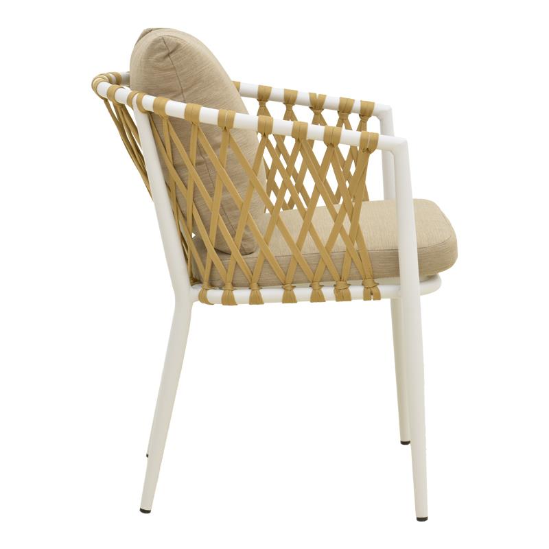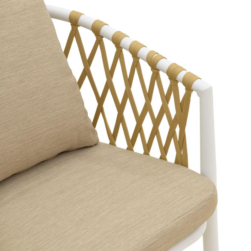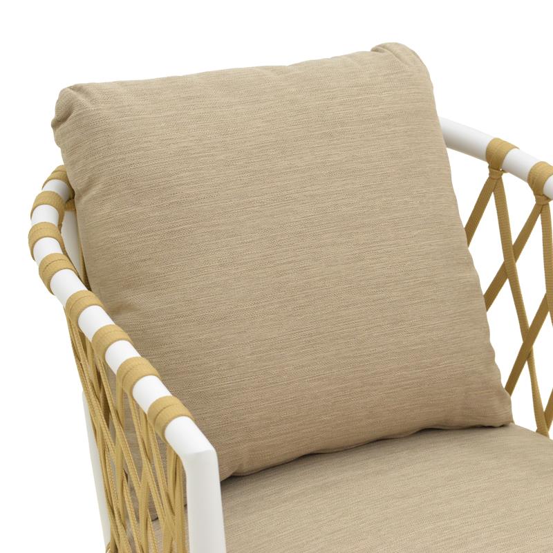 Ανανεώστε τον χώρο σας με την κομψή πολυθρόνα Peluxe, συνδυάζοντας σύγχρονο design και εξαιρετική άνεση. Με ανθεκτικό σκελετό αλουμινίου σε λευκό και ντύσιμο με σχοινί σε φυσική απόχρωση , προσφέρει μοναδικό χαρακτήρα και στιβαρότητα.