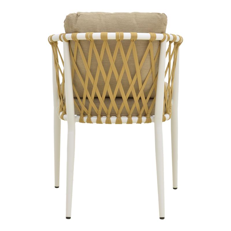 - Το κάθισμα και η πλάτη διαθέτουν μαξιλάρια σε μπεζ χρώμα από 100% πολυεστέρα, με αφρό πυκνότητας 18 kg/m³ για άνεση που διαρκεί.