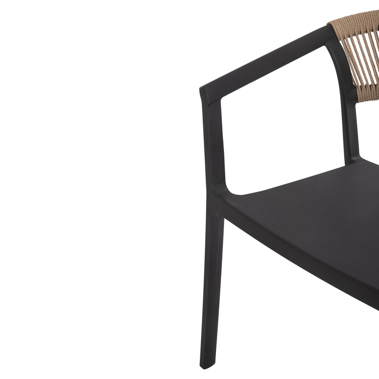 Η πολυθρόνα BOGI είναι από μονοκόμματο πολυπροπυλένιο σε ΜΑΥΡΟ χρώμα με ελαφρώς κυρτή πλάτη επενδυμένη με συνθετικό σχοινί σε ΜΠΕΖ χρώμα, και πρακτικά μπράτσα. Όλη η κατασκευή είναι ελαφριά και άνετη, και θα γίνει το αγαπημένο κάθισμα σε όποιο χώρο κι αν τοποθετηθεί χάρη στην πρακτικότητά του. Ιδανική επιλογή και για επαγγελματική χρήση, όπως σε catering κτλ.