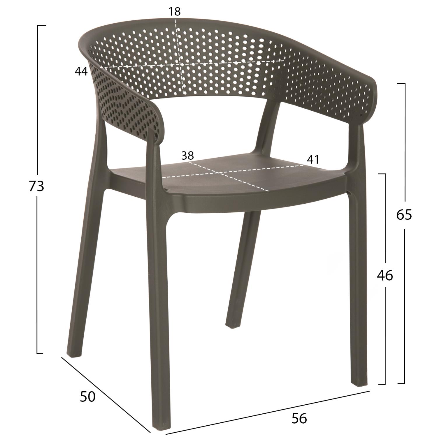 Πολυθρόνα PERFOE πολυπροπυλενίου σε DARK OLIVE χρώμα. Ιδανική πρόταση για χρήση σε εξωτερικούς χώρους, είτε επαγγελματικούς (χώροι δεξιώσεων, εταιρείες catering, κλπ.) είτε για το σπίτι. Η πολυθρόνα αποτελείται από ένα λείο κάθισμα και μια ημικυκλική, ανεξάρτητη και «τρυπητή» πλάτη και μπράτσα. Είναι πανέμορφη και θα αναβαθμίσει αισθητικά κάθε εξωτερικό χώρο.