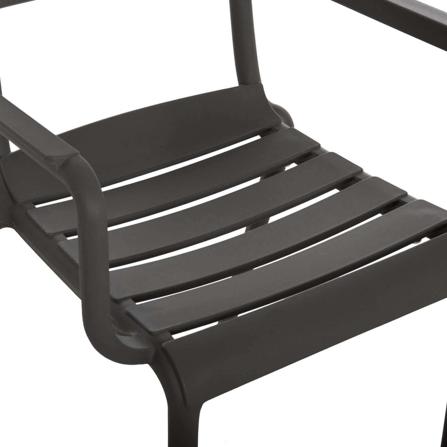 Η πολυθρόνα PHILLY είναι μια πολυθρόνα εξωτερικού χώρου σε μοντέρνα υλοποίηση. Είναι ποιοτική και κομψή στην όψη, ενώ το καμπυλωτό κάθισμα στο μπροστά μέρος όπως και τα σχετικά ψηλά της μπράτσα την καθιστούν αναπαυτικότατη. Όλη η πολυθρόνα είναι από πολυπροπυλένιο σε OLIVE GREEN χρώμα. Είναι στοιβαζόμενη, ελαφριά και άνετη, ιδανική επιλογή και για επαγγελματική χρήση, όπως σε catering κτλ.