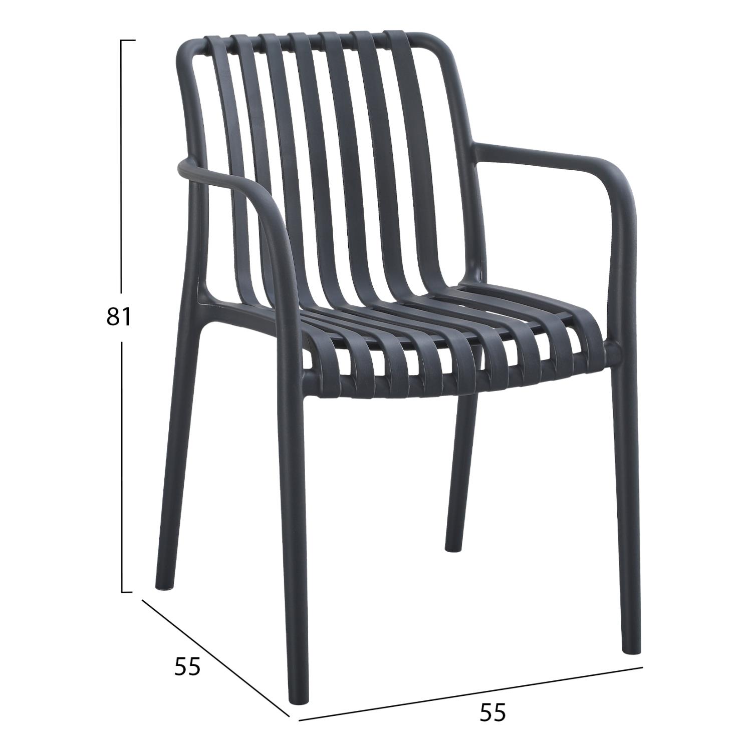 Η πολυθρόνα TIPPY είναι μια κλασσική πολυθρόνα εξωτερικού χώρου που θα καλύψει κάθε σας ανάγκη στην αυλή ή το μπαλκόνι σας. Είναι ποιοτική και κομψή στην όψη, και σίγουρα τραβάει τα βλέμματα. Όλη η πολυθρόνα είναι από μονοκόμματο πολυπροπυλένιο σε ΣΚΟΥΡΟ ΓΚΡΙ χρώμα. Η πολυθρόνα είναι στοιβαζόμενη, ελαφριά και άνετη, ιδανική επιλογή και για επαγγελματική χρήση, όπως σε catering κτλ.