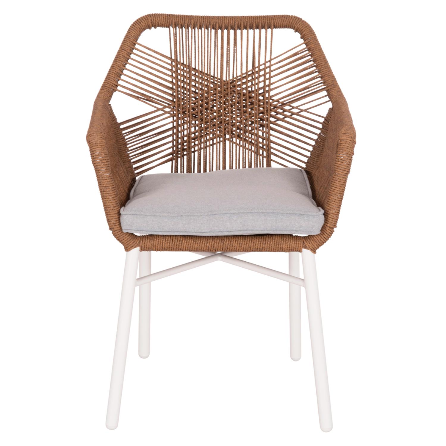 Η πολυθρόνα αλουμινίου TOPIN σε ΛΕΥΚΟ χρώμα είναι πανέμορφη! Ο σχεδιασμός της με την μεσαίου ύψους πλάτη και τα χαμηλά μπράτσα, όλα από ΜΠΕΖ συνθετικό «τυλιχτό» Rattan (μοιάζει με σχοινί), και το μαξιλάρι καθίσματος σε ανοιχτό ΕΚΡΟΥ χρώμα, θα αναβαθμίσει αισθητικά τον χώρο που θα την τοποθετήσετε και θα τραβήξει τα βλέμματα.
