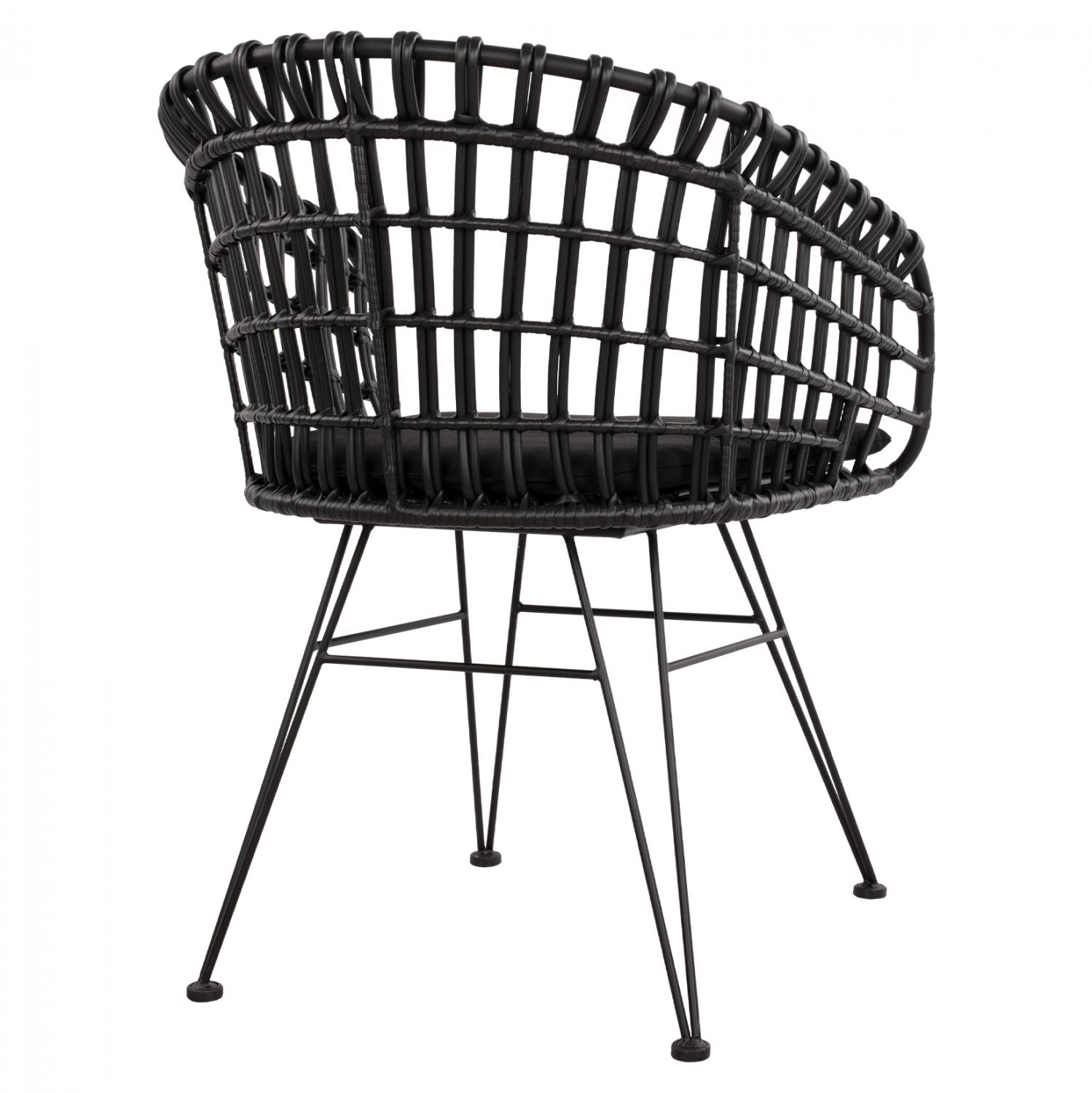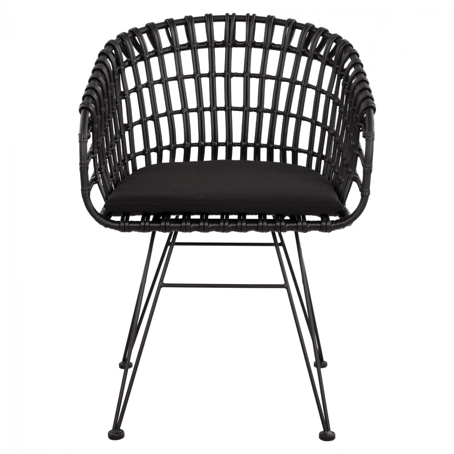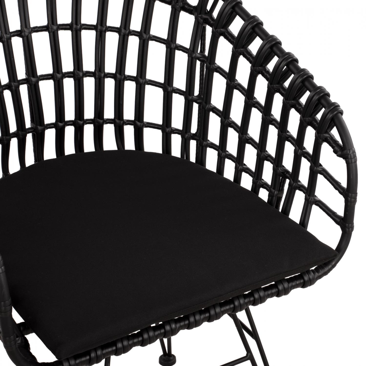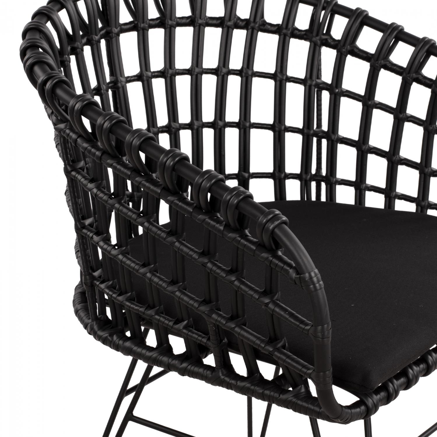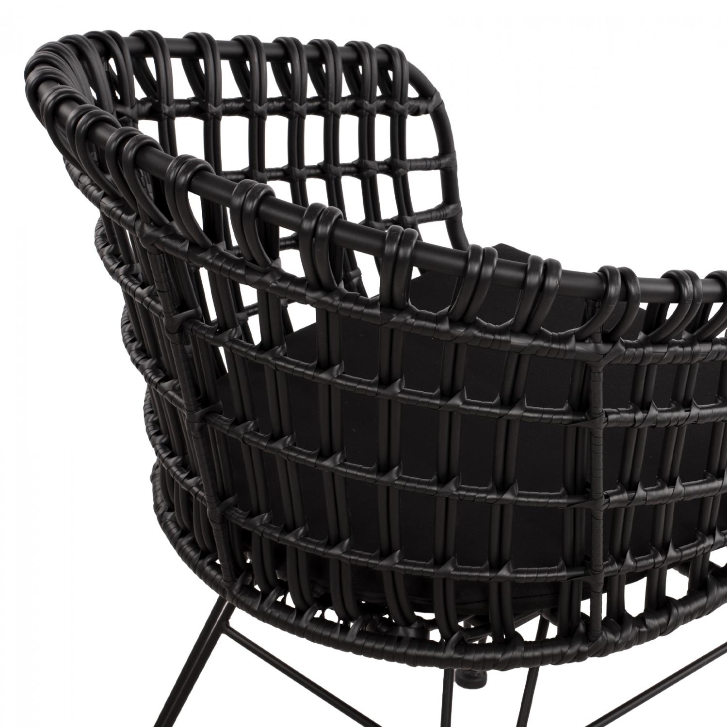 Μοντέρνα πολυθρόνα ALLEGRA τύπου φωλιά, εξωτερικού αλλά και εσωτερικού χώρου, κατασκευασμένη από μεταλλικό σκελετό σε μαύρη απόχρωση και επενδυμένη με πλεκτό wicker.