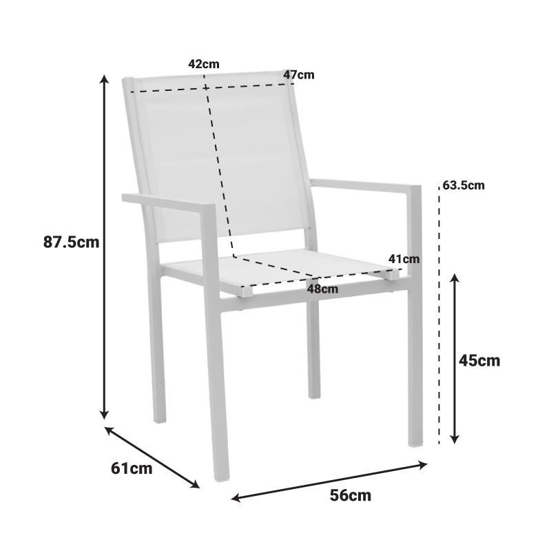Καρέκλα κήπου Zacreta αλουμίνιο – textilene λευκό 61×56,5×87,5 εκ.