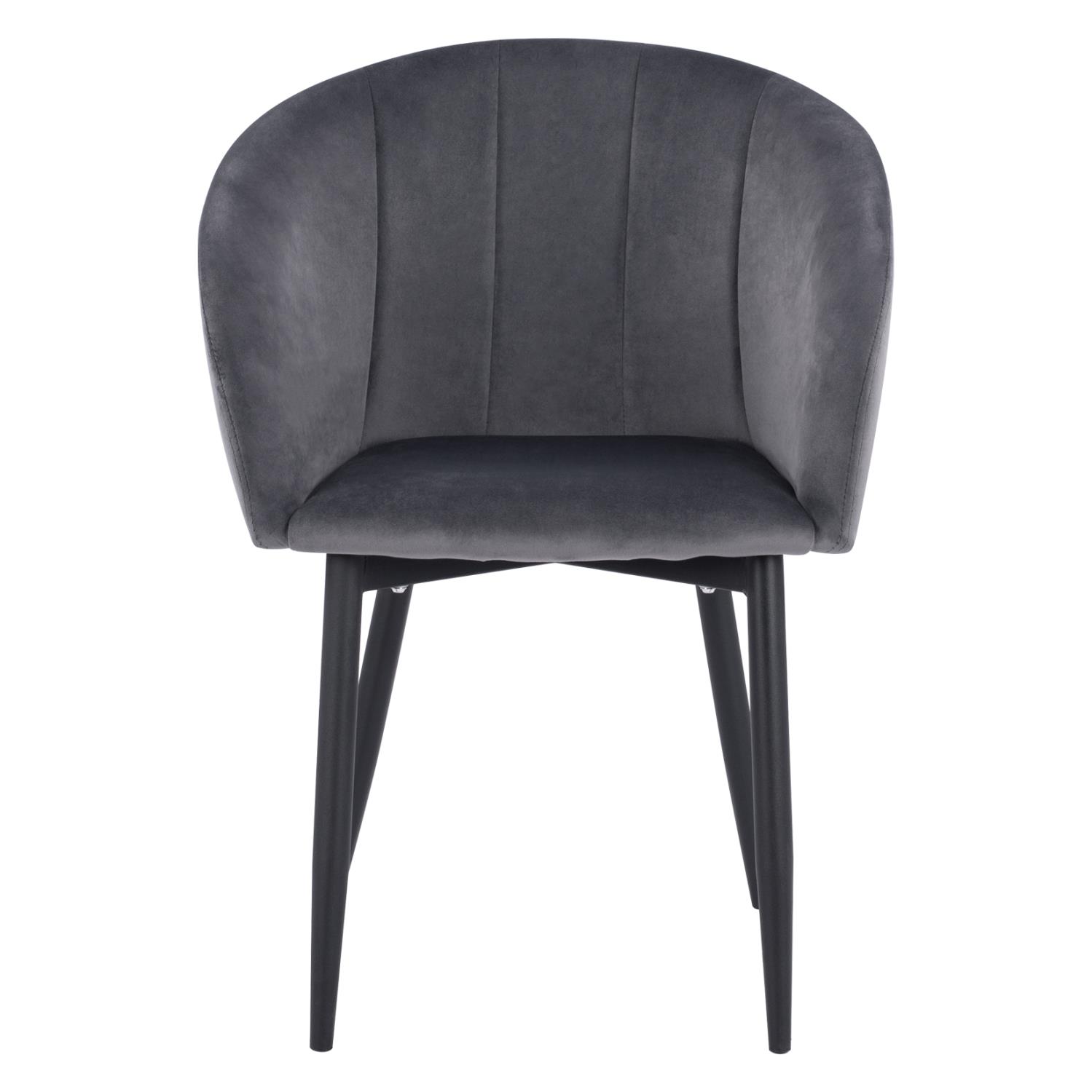 Πολυθρονάκι BESSIE με μπράτσα επενδυμένο με βελούδο σε γκρι απόχρωση και μεταλλικά πόδια σε μαύρη απόχρωση.