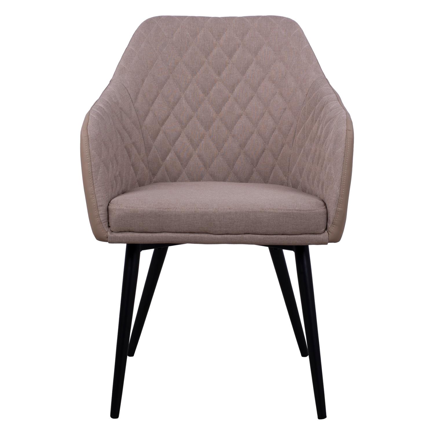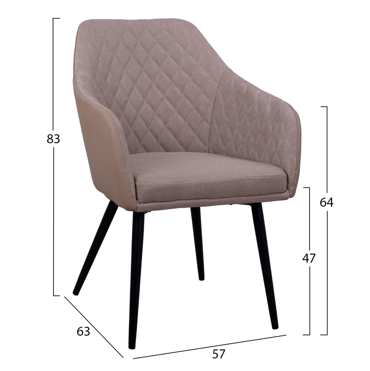 Η πολυθρόνα CHARLES είναι επενδυμένη με ύφασμα σε μπεζ απόχρωση και μπεζ PU στην πλάτη ενώ τα πόδια είναι μεταλλικά σε μαύρη απόχρωση.