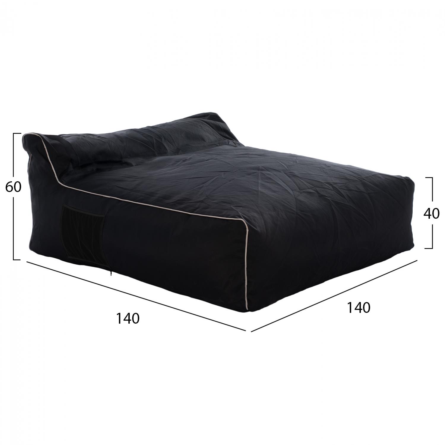 Επαγγελματικό πουφ δύο ατόμων, κατασκευασμένο από textline 2x1 σε μαύρη απόχρωση, πολύ μεγάλης αντοχής στον ήλιο, την υγρασία και την τριβή.