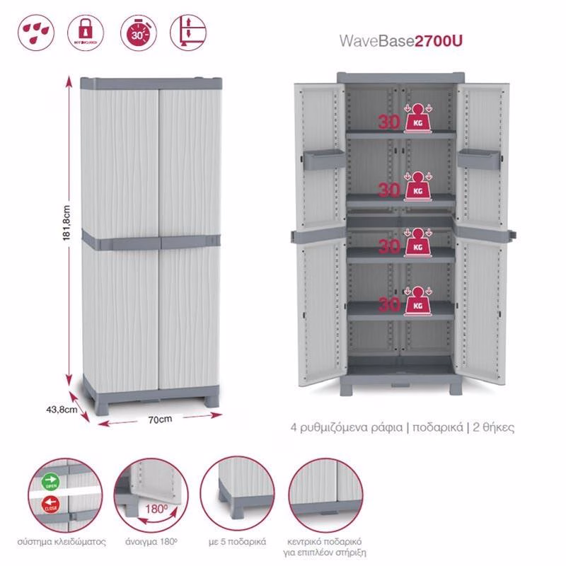 Ντουλάπα Δίφυλλη Πλαστική WaveBase 2700U