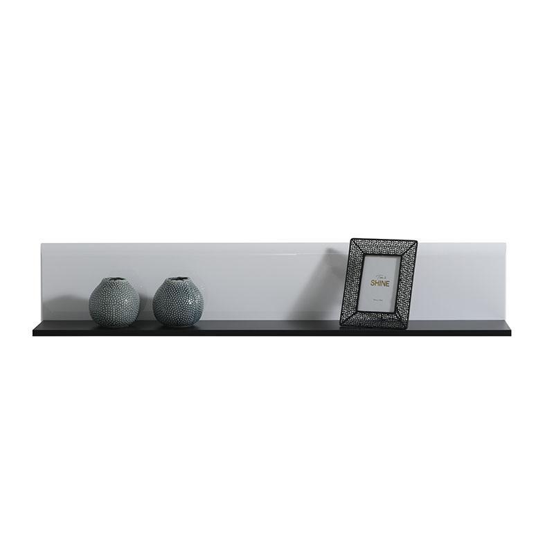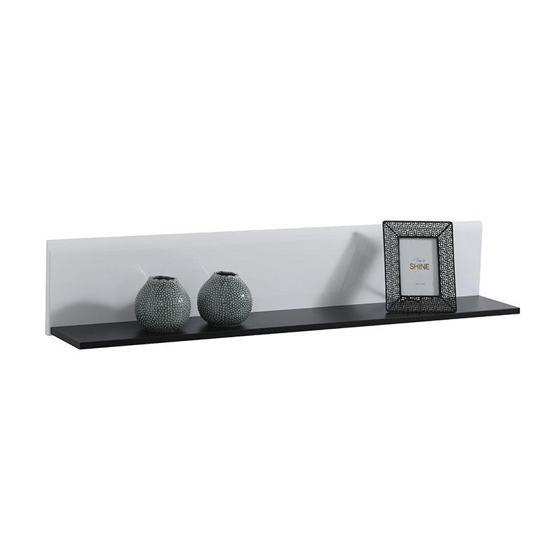 Ο συνδυασμός λευκού, μαύρου και γυαλιστερής λευκής λάκας δημιουργεί μια μοντέρνα και κομψή αίσθηση, ενώ η ανθεκτική μοριοσανίδα με επικάλυψη μελαμίνης Ε1 εγγυάται αντοχή στη χρήση. Μπορείτε να τοποθετήσετε βιβλία, διακοσμητικά, συλλεκτικά αντικείμενα ή φυτά, ενισχύοντας την αισθητική του χώρου σας.