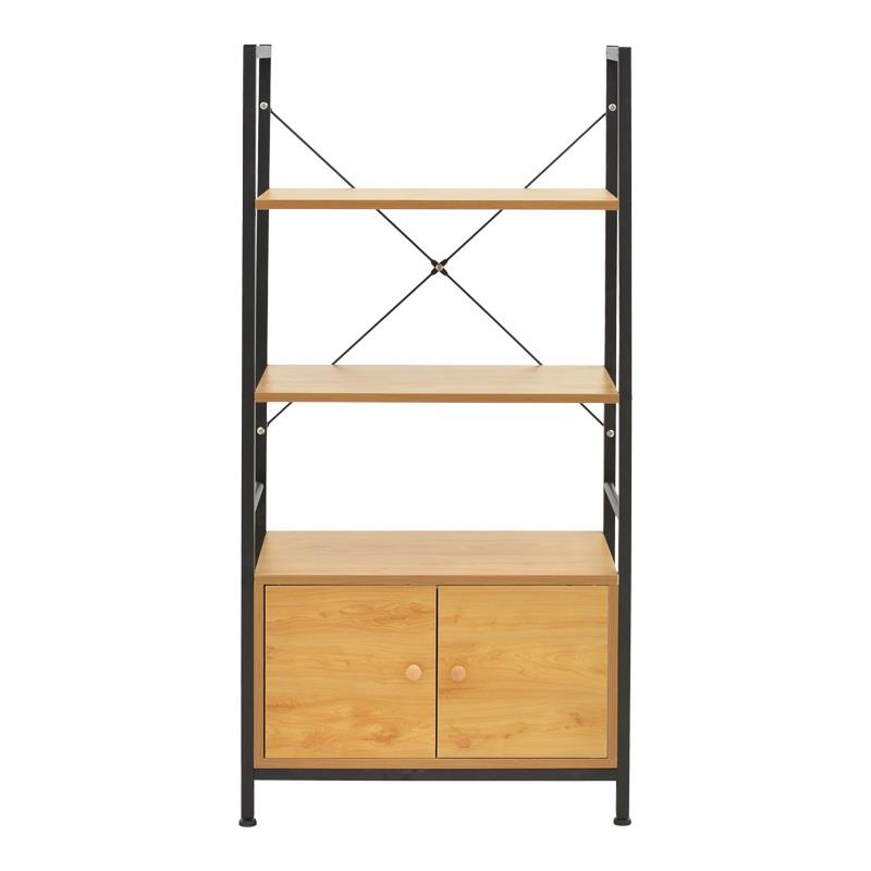 Ραφιέρα επιδαπέδια με ντουλάπι Kuili μέταλλο μαύρο – mdf oak 60x36x121 εκ.