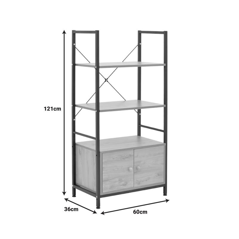 • Διαθέτει τρια ευρύχωρα ράφια και ντουλάπι, ιδανικά για την αποθήκευση φούρνου μικροκυμάτων, τοστιέρας, συσκευών κουζίνας, βάζων και σκευών.