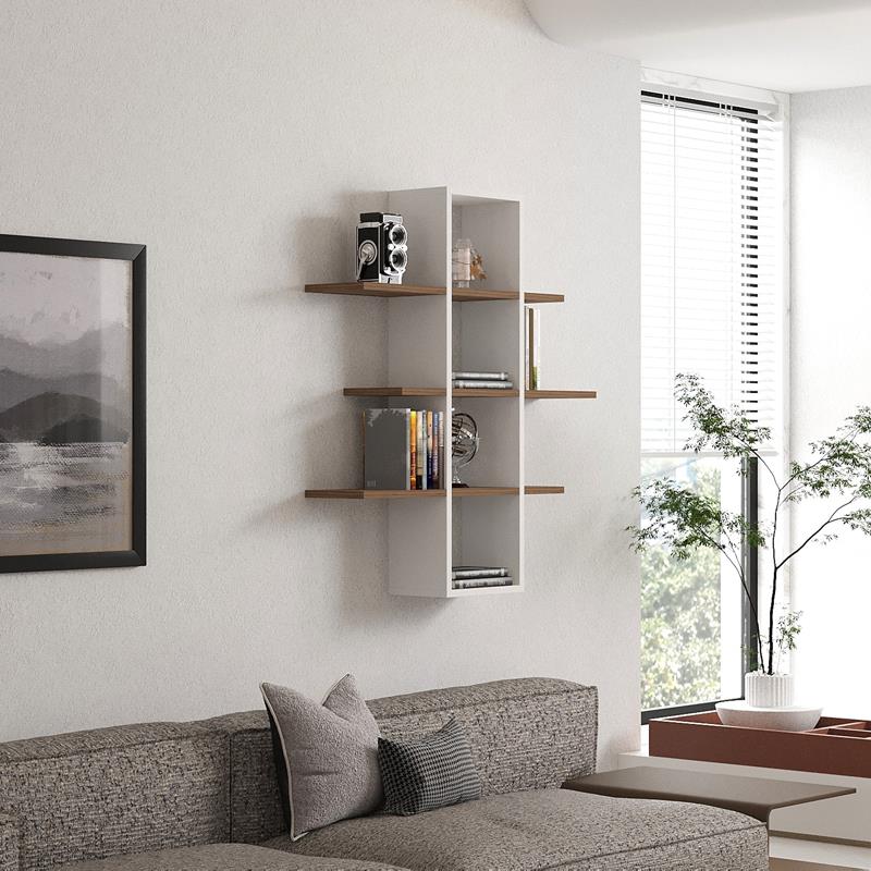 Ραφιέρα τοίχου Akira pakoworld μελαμίνη σε καρυδί-λευκή απόχρωση 96x19.5x101εκ