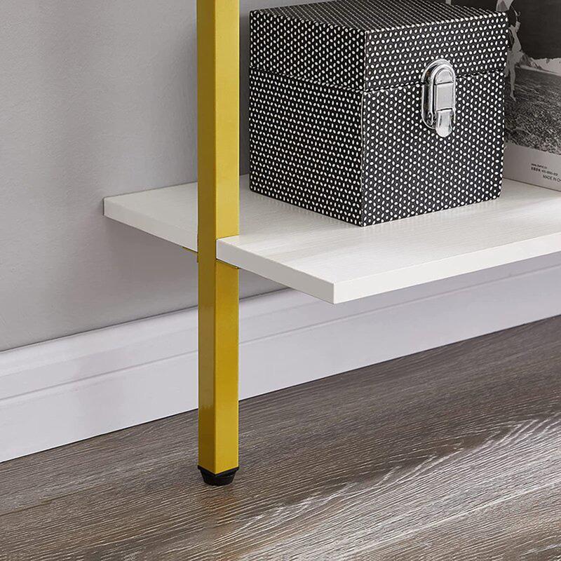 Αυτή η σύγχρονη ραφιέρα 5 επιπέδων προσφέρει έναν μοναδικό και κομψό τρόπο για να επιδείξετε τα αγαπημένα σας βιβλία, φυτά, διακοσμητικά αντικείμενα ή άλλα προσωπικά σας είδη. Ο λιτός, μινιμαλιστικός σχεδιασμός διαθέτει μια κομψή γραμμή, με έναν ανθεκτικό, χρυσό μεταλλικό σκελετό που έρχεται σε αντίθεση με τα λευκά ράφια, καθιστώντας την μια ευέλικτη προσθήκη σε κάθε σαλόνι, υπνοδωμάτιο, γραφείο , ή ακόμα και σε στον επαγγελματικό σας χώρο