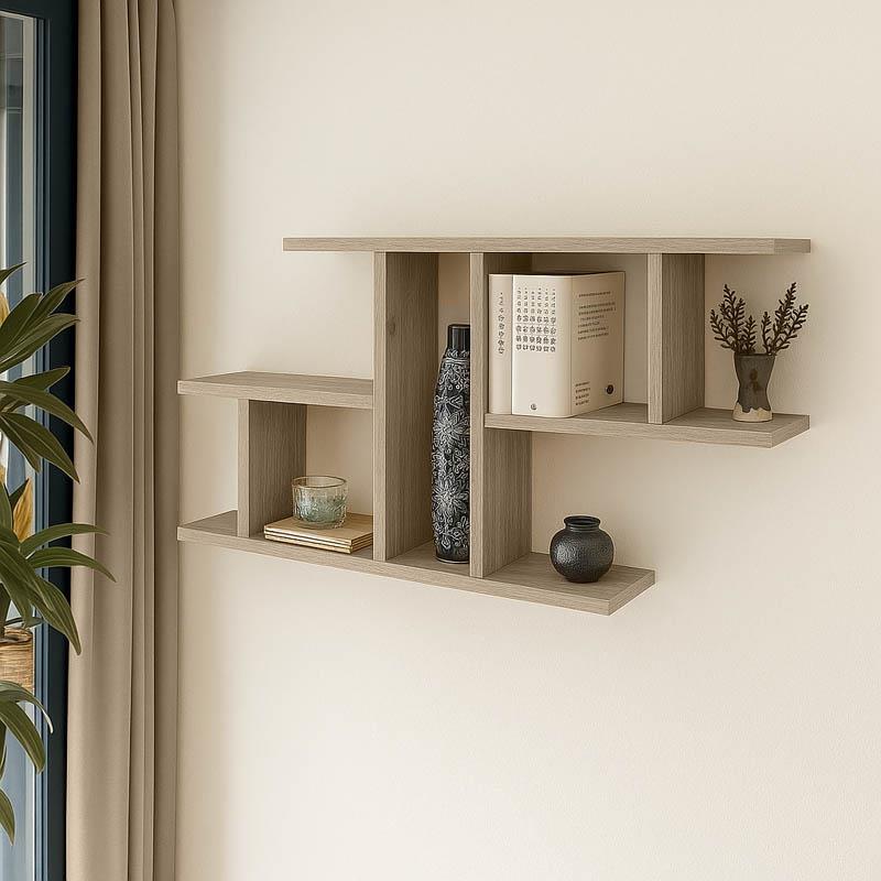 *Τα ασύμμετρα ράφια προσφέρουν ευελιξία στην αποθήκευση και την προβολή αντικειμένων, επιτρέποντας την προσαρμογή της ραφιέρας στις ανάγκες σας.*Προσφέρεται σε χρώμα oak