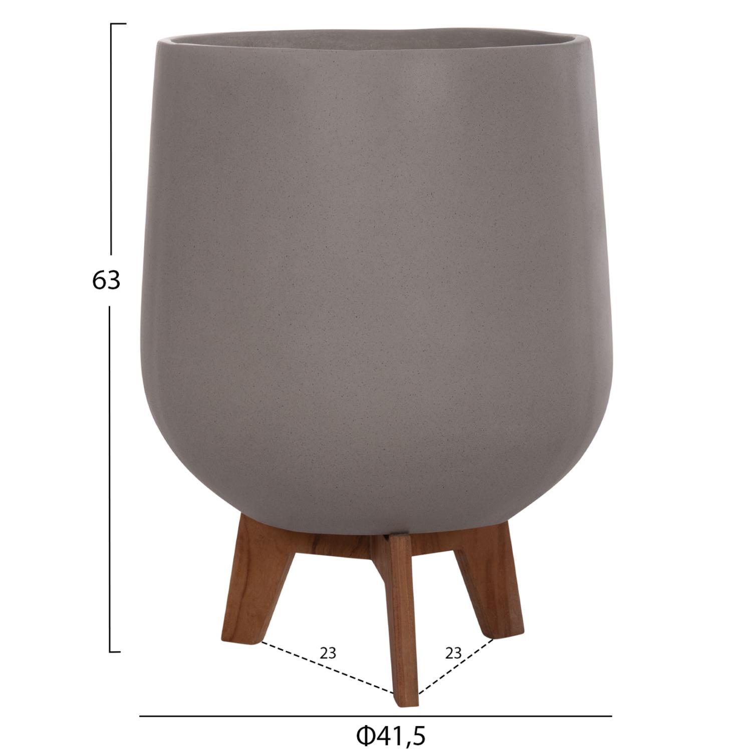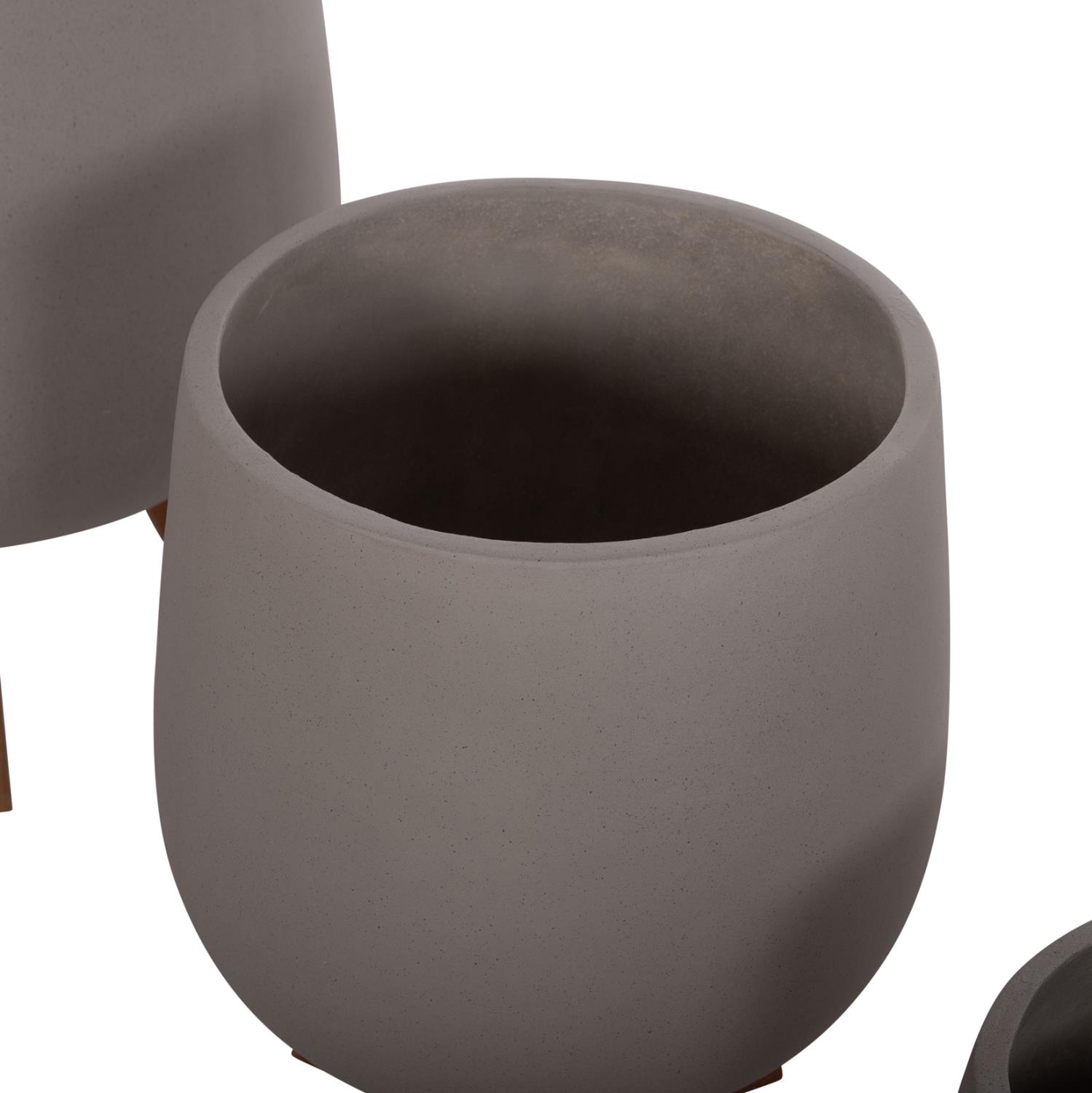 Σετ 3 Γλάστρες TRYLL C4681.03 με Ξύλo Teak Βάσεις από Fiber Cement Γκρί