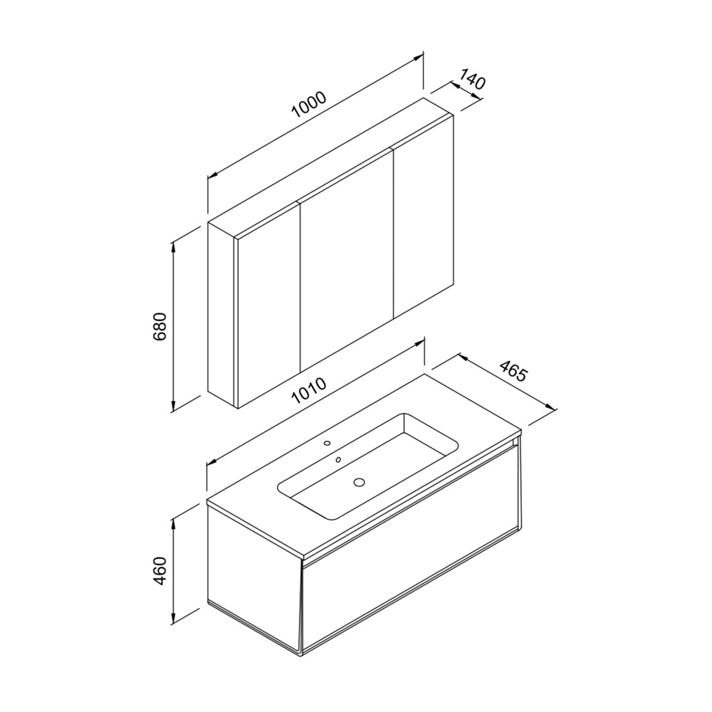 Νιπτήρας: Πλάτος: 101 εκ. / Βάθος 45.5 εκ.