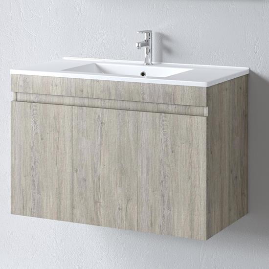 Σας παρουσιάζουμε το μοναδικό σετ μπάνιου OMEGA 90 σε ζεστή και φιλόξενη μπέζ δρύς - beige oak απόχρωση. Αποτελείται από έναν κρεμαστό πάγκο μπάνιου με τρία ανοιγόμενα ντουλάπια, με χωνευτό - κρυφό σύστημα χερουλιών, για ένα καθαρό αποτέλεσμα στο μπάνιο σας ενώ διαθέτει και νιπτήρα πορσελάνης slim σχεδιασμού σε λευκό χρώμα, συνδυάζοντας αισθητική και πρακτικότητα. Επιπλέον, το σετ μπάνιου διαθέτει και καθρέπτη - ντουλάπι το οποίο αποτελείται από 2 αποθηκευτικούς χώρους, με ένα ράφι στο εσωτερικό, με τρείς πόρτες με καθρέπτη.
