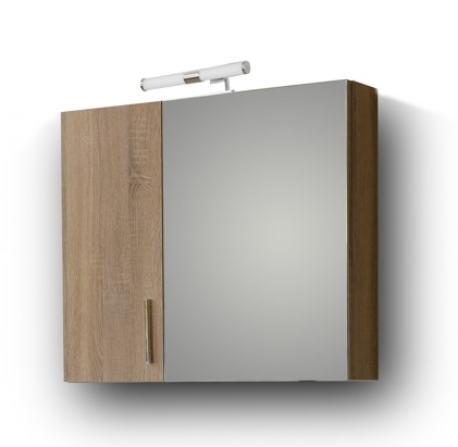 - Καθρέπτης:Περιλαμβάνει πρόσοψη καθρέπτη που ανοίγει προς τα δεξιά και μια μικρότερη ξύλινη πόρτα στο αριστερό πλαϊνό μέρος, στον ίδιο χρωματισμό με τον καθρέπτη, που ανοίγει προς τα αριστερά. Το μικρό ντουλαπάκι διαθέτει ένα ράφι που σας προσφέρει έξτρα αποθηκευτικό χώρο. Το μεγάλο ντουλάπι διαθέτει επίσης εσωτερικό ράφι για την τοποθέτηση των φαρμάκων και αντικειμένων καθημερινής χρήσης.
