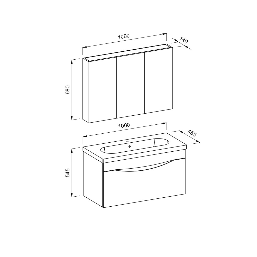 Νιπτήρας: Πλάτος: 100 εκ. / Βάθος 45.5 εκ.
