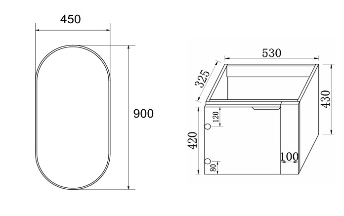 Καθρέπτης: Πλάτος: 45 εκ. / Ύψος 90 εκ.