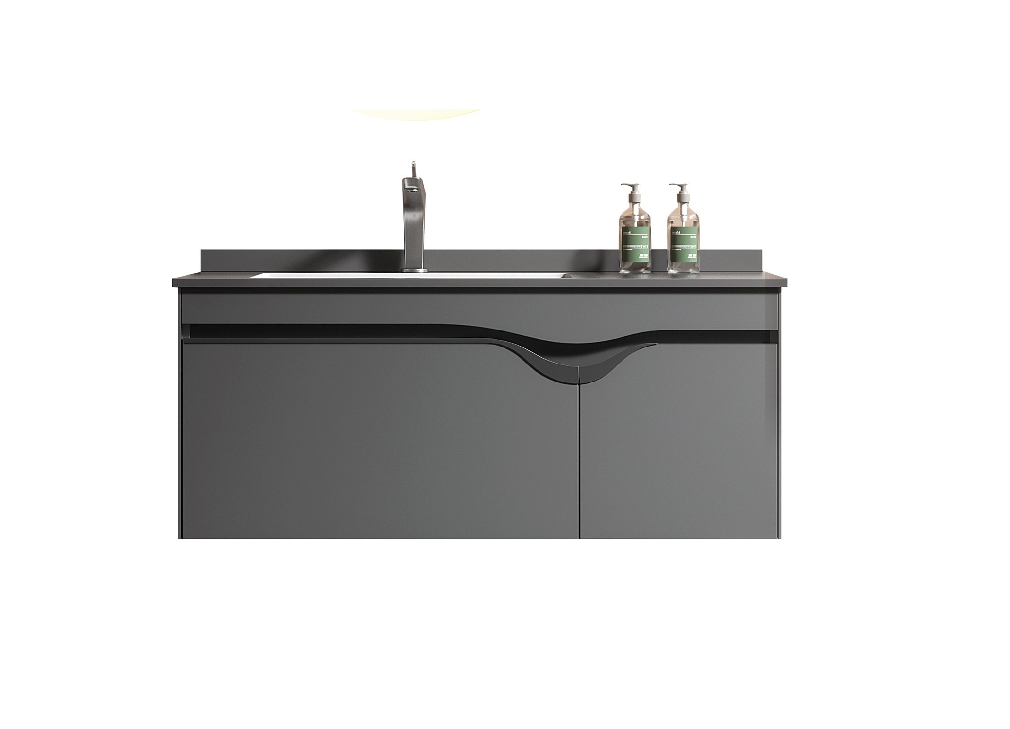 Ανακαλύψτε ένα ιδιαίτερο και μοντέρνο σετ μπάνιου και ανανεώστε το χώρο σας, το σετ κρεμαστού πάγκου μπάνιου με νιπτήρα και καθρέπτη DIVA 100, σε premium ανθρακί απόχρωση. Αποτελείται από έναν κρεμαστό πάγκο μπάνιου με έναν ενιαίο αποθηκευτικό χώρο με δύο πόρτες και με ιδιαίτερο κυματιστό χερούλι, έναν πάγκο - TOP σε μαύρη απόχρωση σε συνδυασμό με νιπτήρα πορσελάνης σε λευκή απόχρωση καθώς και έναν μοντέρνο, κυκλικό, με LED φωτισμό καθρέπτη, με λειτουργίες dimmer για να μην θολώνει ο καθρέπτης από τους υδρατμούς καθώς και με επιπλέον ραφάκι για τα καθημερινά σας αντικείμενα.