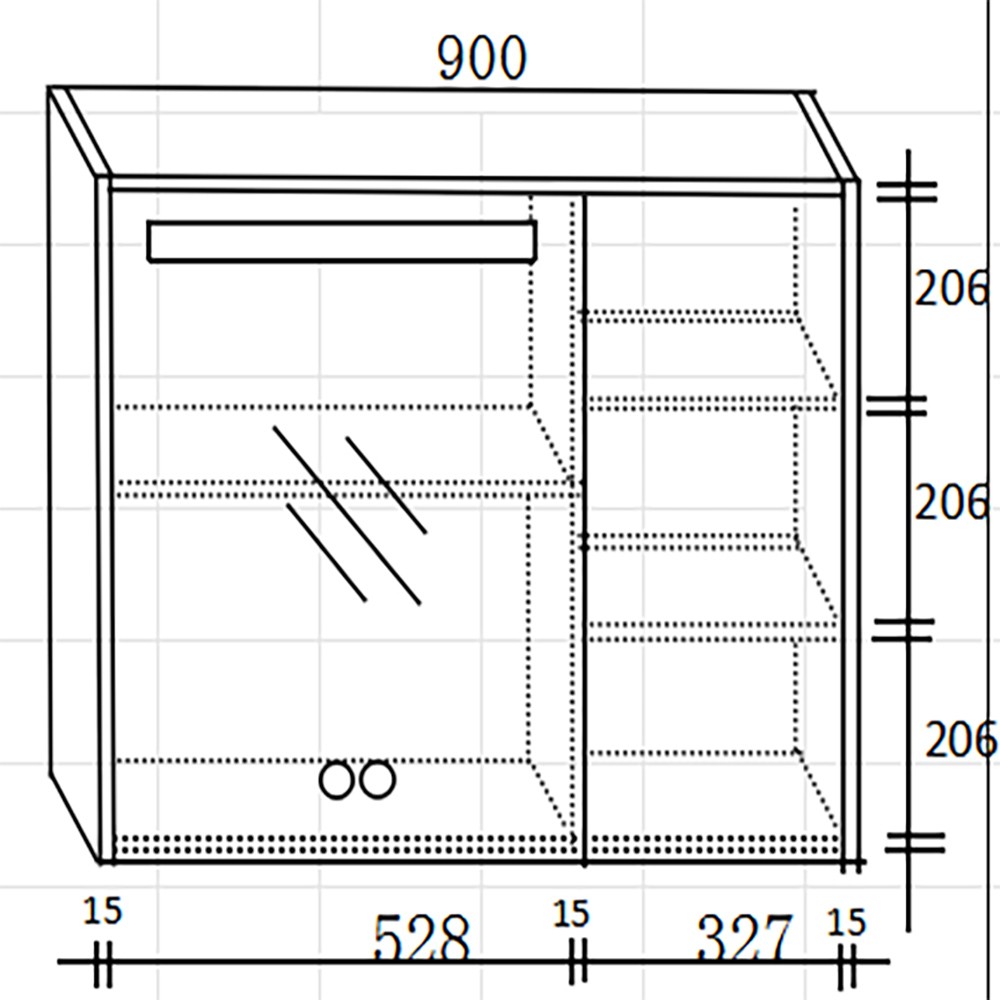 - Καθρέπτης: Ντουλάπι καθρέπτης LED με αντιθαμβωτική λειτουργία antifog και 3 ράφια για μεγάλη αποθήκευση και οργάνωση όλων των προσωπικών σας αντικειμένων. Το δεξί πορτάκι είναι με τζάμι . Το πορτάκι του καθρέπτη εσωτερικά διαθέτει θήκες αποθήκευσης αξεσουάρ.