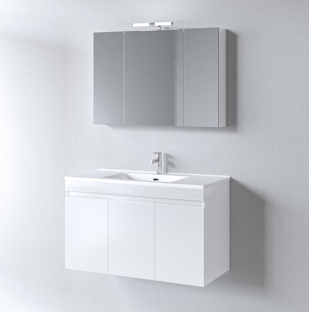Εκμεταλλευτείτε στο έπακρο τον χώρο σας και τοποθετείστε στο μπάνιο σας αυτό το μοναδικό σετ πάγκου μπάνιου, νιπτήρα και καθρέπτη ντουλάπι OMEGA 120 σε μοντέρνα και φωτεινή λευκή γυαλιστερή απόχρωση. Αποτελείται από έναν κρεμαστό πάγκο μπάνιου με δύο αποθηκευτικούς χώρους με τρείς πόρτες, με χωνευτό - κρυφό σύστημα χερουλιών, για ένα καθαρό αποτέλεσμα στο μπάνιο σας ενώ διαθέτει και νιπτήρα πορσελάνης slim σχεδιασμού, σε λευκό χρώμα, συνδυάζοντας αισθητική και πρακτικότητα. Επιπλέον, το σετ μπάνιου διαθέτει και καθρέπτη - ντουλάπι το οποίο αποτελείται από δύο αποθηκευτικούς χώρους, με ράφι στο εσωτερικό τους, με τρείς πόρτες με καθρέπτη.