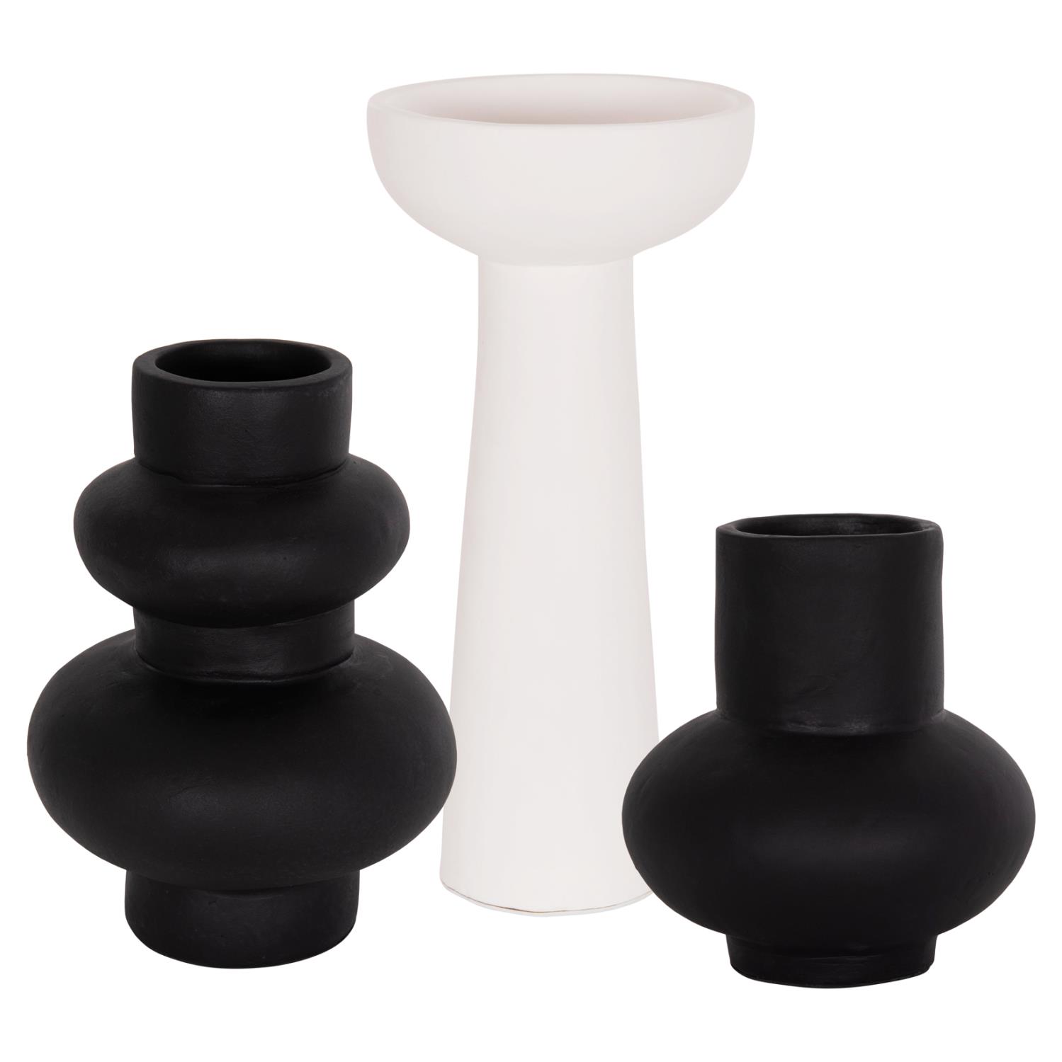 Σετ 3 επιτραπέζιων διακοσμητικών βάζων σε διαφορετικά χρώματα και σχήματα. Είναι κατασκευασμένα εξολοκλήρου από τερακότα σε ΛΕΥΚΟ και ΜΑΥΡΟ χρώμα (1 λευκό-2 μαύρα). Ιδανικά για πληθώρα χώρων, τόσο για το σπίτι, όσο και για επαγγελματικούς χώρους.