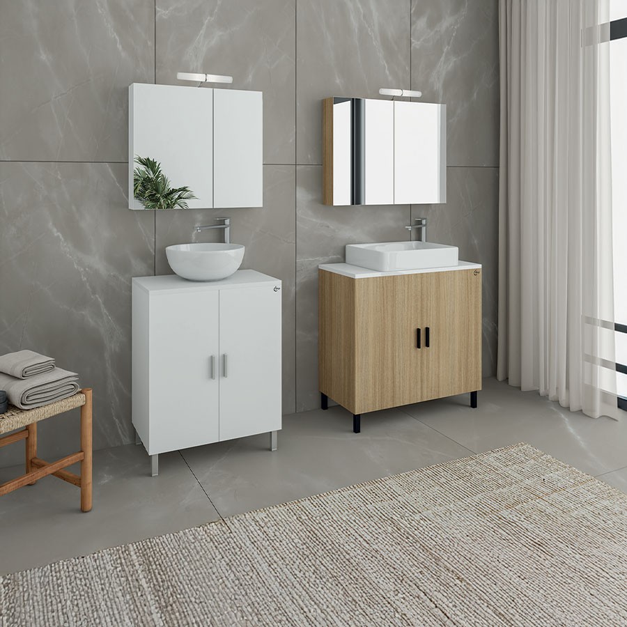 *Παραδίδεται σε εργαστασιακή συσκευασία, με το ντουλάπι και τον καθρέπτη να είναι μονταρισμένα.