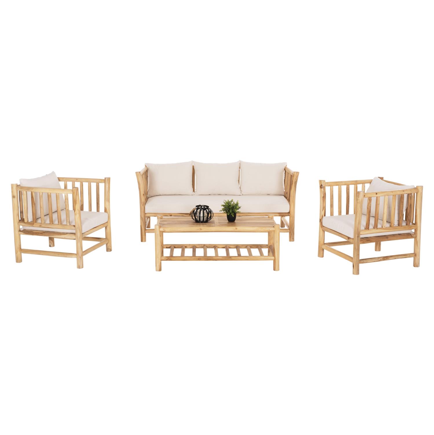 Σετ Κήπου Σαλόνι EDDARD 4 τεμ Μασίφ Ξύλο TEAK Φυσικό - Λευκό