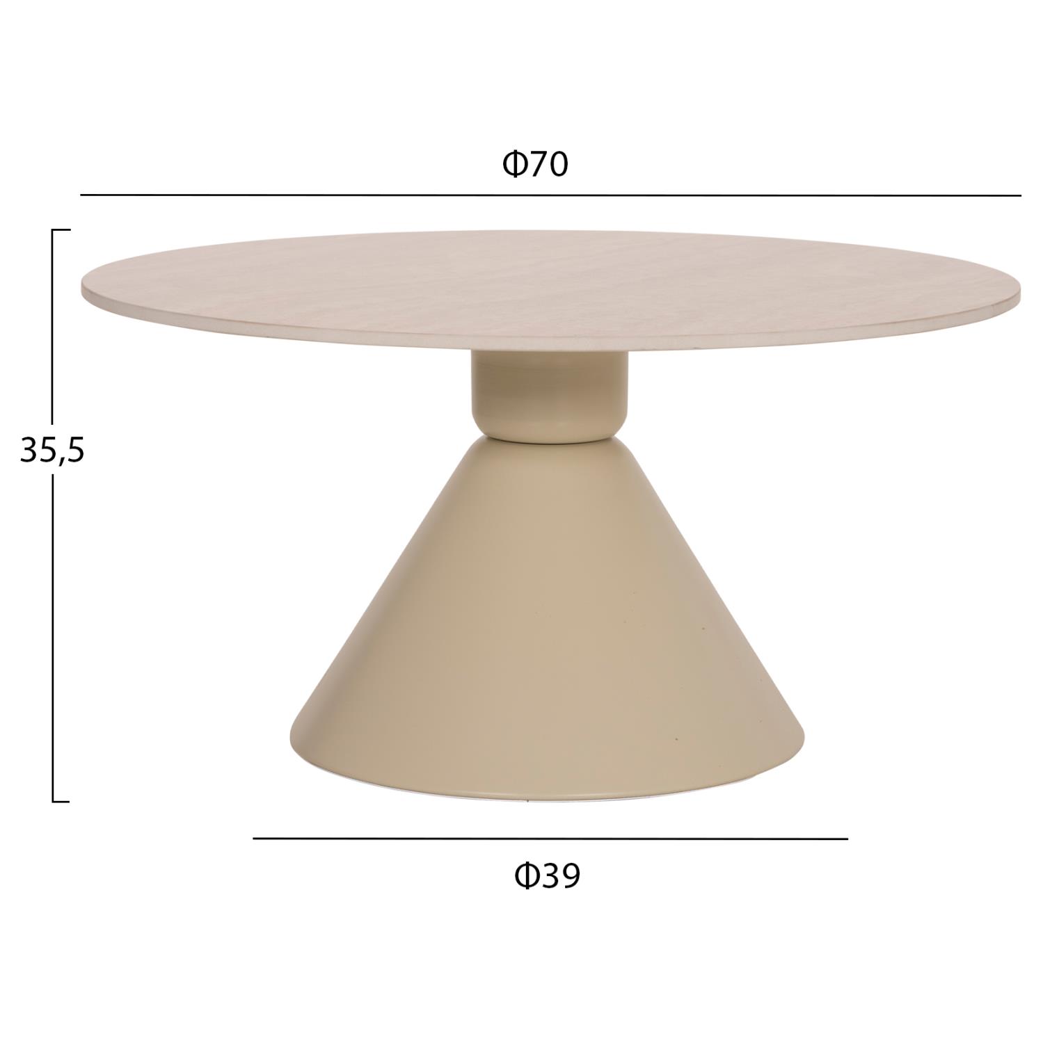 Αυτό το σετ τραπεζιών για το σαλόνι αποτελείται από 2 μεταλλικά τραπεζάκια στρογγυλά διαφορετικών μεγεθών. Οι βάσεις τους έχουν σχήμα κώνου σε ΣΑΜΠΑΝΙ χρώμα, ενώ οι επιφάνειες είναι κεραμικές glossy σε χρωματικό σχήμα πέτρας Τραβερτίνας. Ιδανικά τόσο για το σπίτι, όσο και για επαγγελματικούς χώρους.