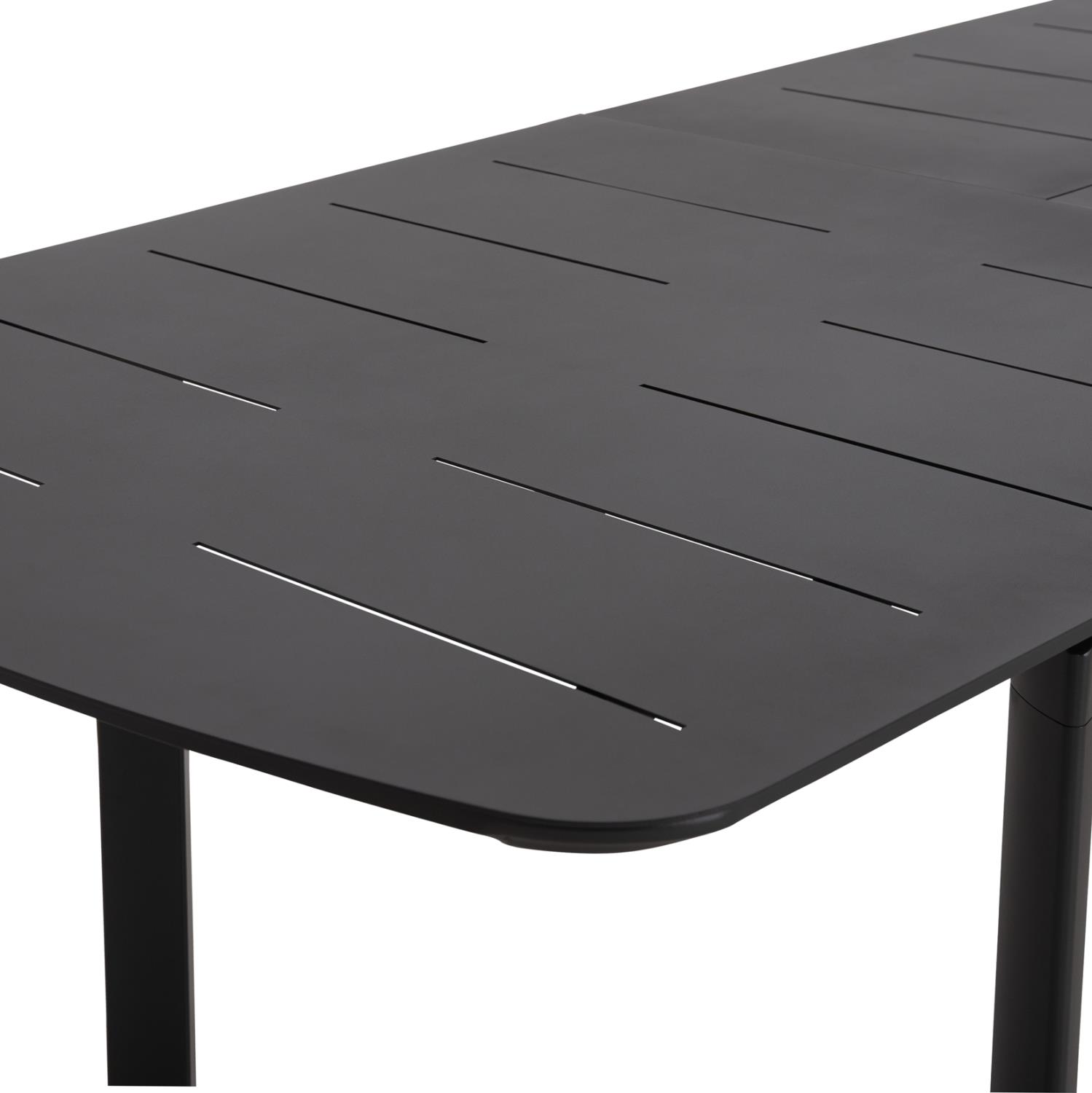 Ένα ορθογώνιο ΕΠΕΚΤΕΙΝΟΜΕΝΟ τραπέζι εξολοκλήρου από αλουμίνιο σε ΓΚΡΙ χρώμα, και 6 καρέκλες αλουμινίου σε ΓΚΡΙ με όμορφη minimal πλάτη και μαξιλάρι καθίσματος πάχους 3εκ με επένδυση από OLEFIN ύφασμα και αφρό γεμίσματος ποιότητας 25D για εξαιρετική αίσθηση κατά την χρήση, ενώ η λεπτομέρεια με το ξύλο teak στα μπράτσα ανεβάζει τον πήχυ της ποιότητας.