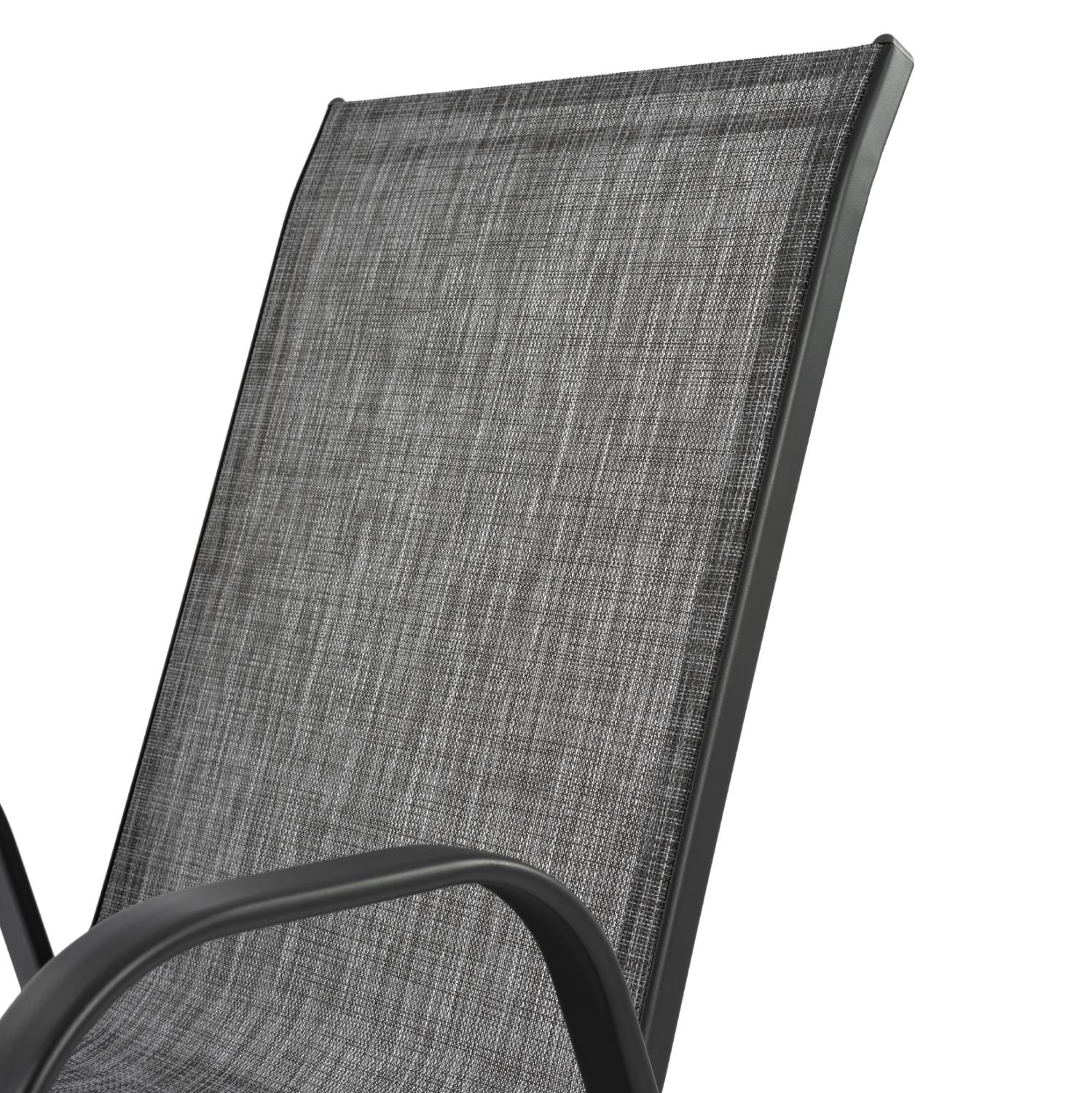 Δύο πολυθρόνες εξωτερικού χώρου από μεταλλικό σκελετό σε γκρι χρώμα με textilene 2x1 μεγάλης αντοχής σε ήλιο και βροχή.