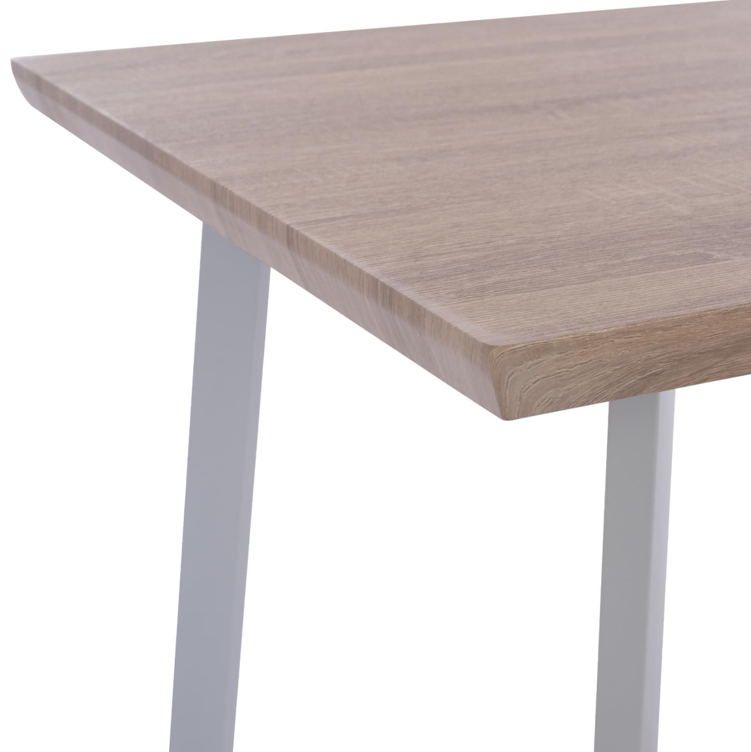 Ένα ορθογώνιο τραπέζι με μεταλλικά πόδια σε ΛΕΥΚΟ χρώμα και επιφάνεια από MDF σε SONAMA χρώμα, και 4 καρέκλες με κάθισμα και πλάτη από πολυπροπυλένιο και μεταλλικά πόδια, σε ΛΕΥΚΟ χρώμα.
