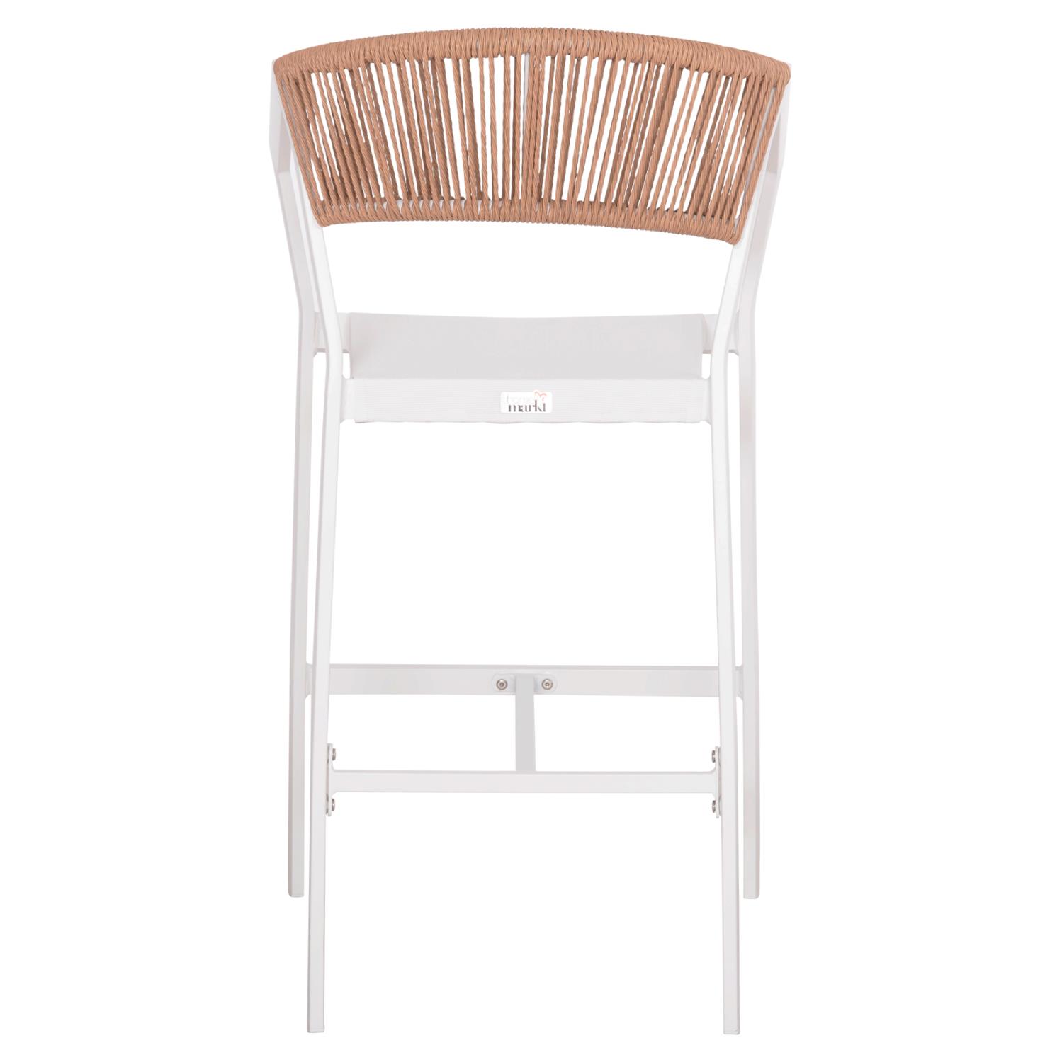 Η πλάτη του σκαμπό είναι επενδυμένη με πολυεστερικό RATTAN. Στα περισσότερα έπιπλα κήπου και γενικά σε έπιπλα για εξωτερικούς χώρους χρησιμοποιείται συνθετικό υλικό από PVC, δηλαδή τεχνητές ίνες υψηλής ποιότητας. Αυτό δίνει στην κατασκευή εξαιρετική αντοχή και ανθεκτικότητα σε ακραίες συνθήκες ζέστης ή κρύου.