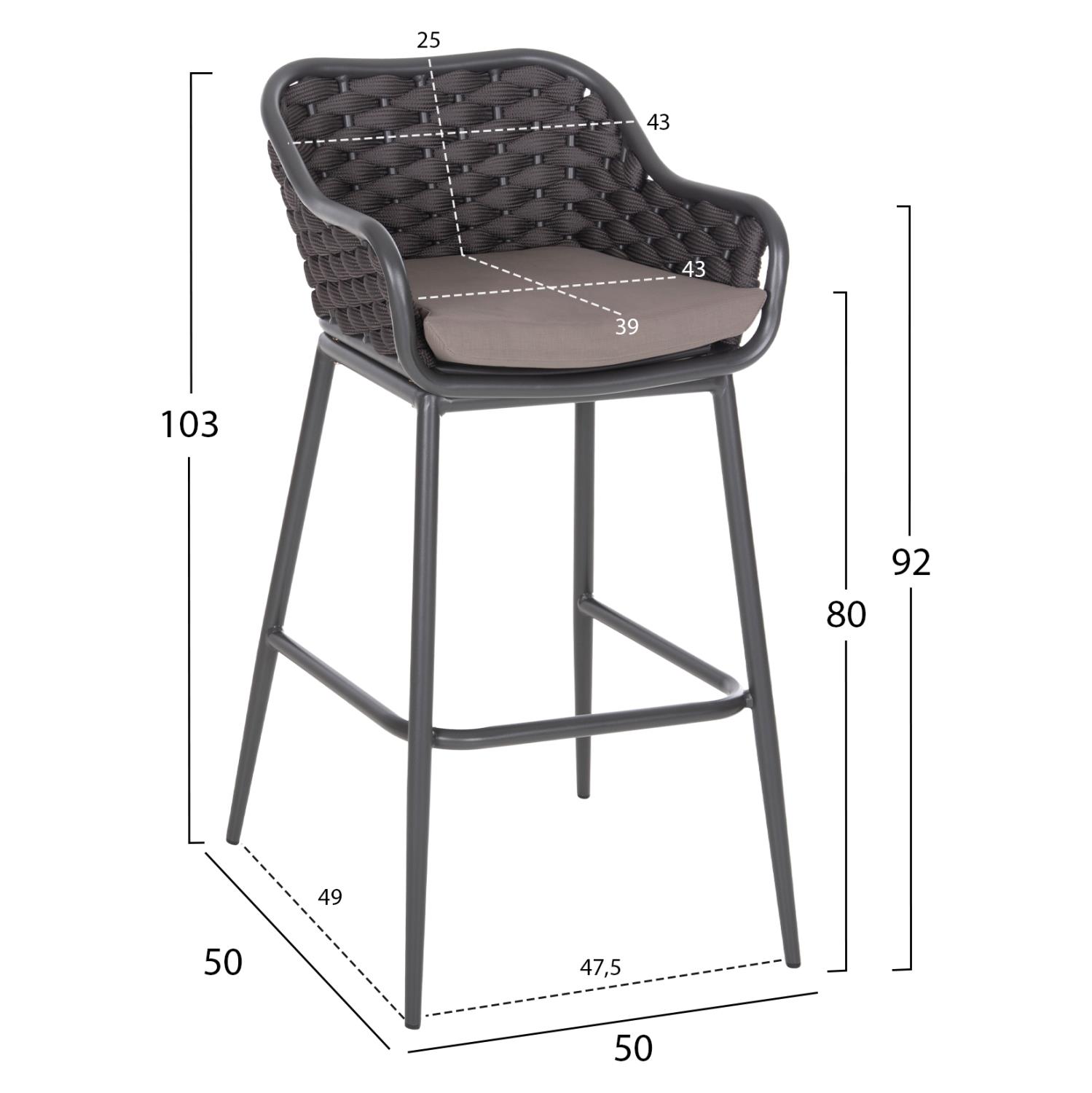 Το σκαμπό C5862.01, κυρίως για επαγγελματική χρήση, είναι αυτό που ψάχνετε για ένα τέτοιο έπιπλο! Μοντέρνο, άνετο και σταθερό! Η διχρωμία του ΑΝΘΡΑΚΙ σκελετού με την ΚΑΦΕ επένδυση από σχοινί σε όλη την πλάτη είναι μοναδική. Η πλάτη με τα μπράτσα αποτελούν ένα ενιαίο κομμάτι με κάθετες βέργες που είναι πλεγμένες με σχοινί και αγκαλιάζουν το σώμα, ενώ η πλάτη είναι ψηλότερη από τα μπράτσα. Ο σκελετός είναι ψηλός και τα πόδια ενώνονται μεταξύ τους με μια δοκό που λειτουργεί ως υποπόδιο. Το μαξιλάρι του καθίσματος είναι σε ΓΚΡΙ χρώμα και είναι άνετο. Το σκαμπό αυτό θα αναβαθμίσει αισθητικά τον χώρο που θα το τοποθετήσετε και θα τραβήξει τα βλέμματα χάρη στα υλικά κατασκευής του.