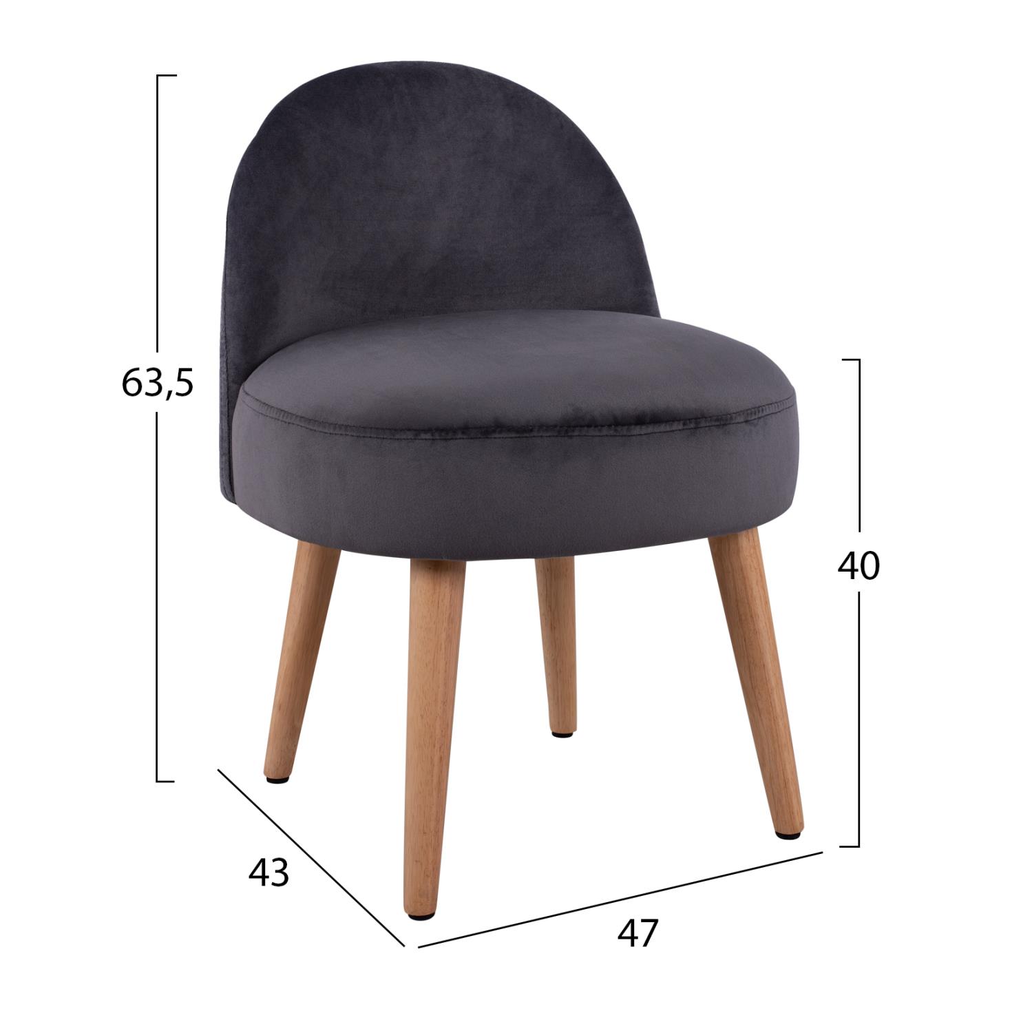 Σκαμπό YASMINE με Πλάτη με Ξύλινα πόδια και Βελούδο Γκρί 47x43x63,5Υ εκ.