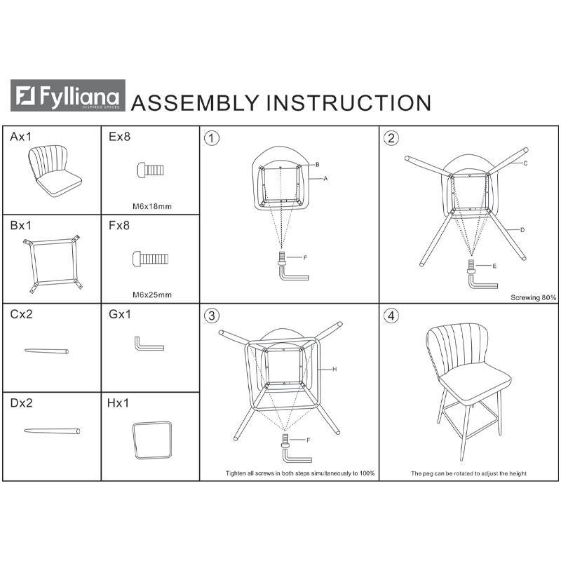 Σκαμπό Μπάρ FL2036 Fylliana Γκρί - Μαύρο 51x54x94 εκ.