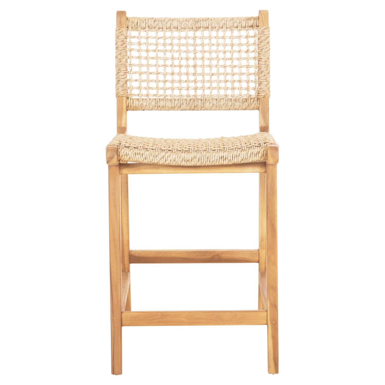 Σκαμπό μπαρ με Πλάτη NESHA Ξύλο TEAK & Σχοινί Viro Εκρού 46×48.5×96Υεκ.