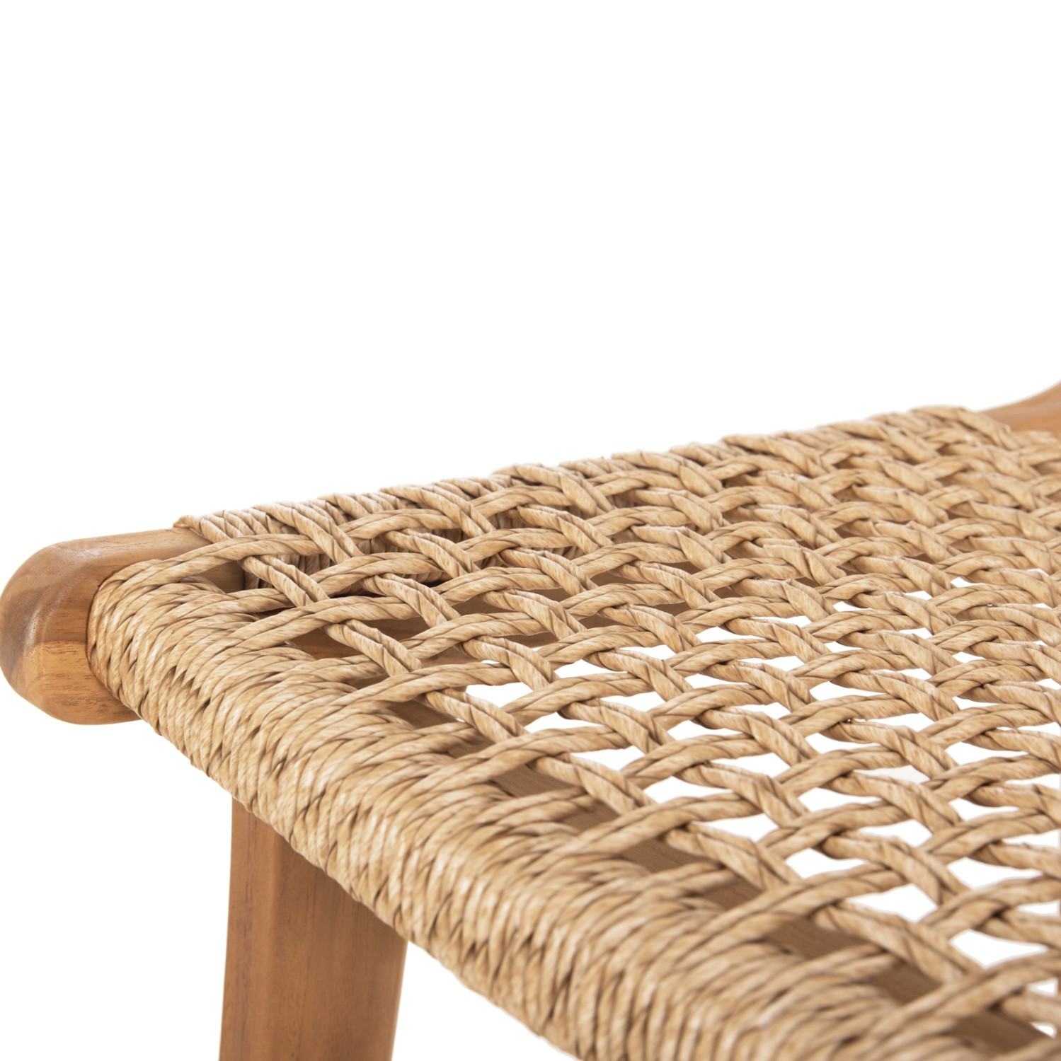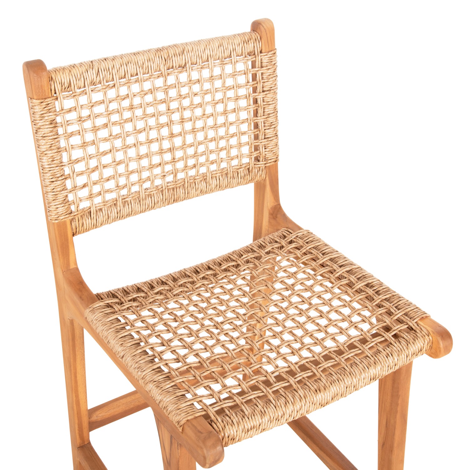 Το ΤΕΑΚ είναι ο πιο δημοφιλής τύπος σκληρού ξύλου. Είναι χρώματος κίτρινο έως σκούρο καφέ, εξαιρετικά βαρύ, υψηλής αντοχής, ανθεκτικό στις καιρικές συνθήκες, ανθεκτικό στο σκέβρωμα και δεν αποσυντίθεται. Συχνά, τα νερά του ξύλου του είναι έντονα και σε ευθεία. Χρησιμοποιείται για πληθώρα κατασκευών εσωτερικού χώρου.Το κάθισμα και η πλάτη αποτελούνται από σχοινί VIRO. Το σχοινί VIRO είναι ένα συνθετικό σχοινί από HDPE (High-density polyethylene). Το VIRO μιμείται την ομορφιά του τροπικού υάκινθου, αλλά οι ίνες του είναι παντός καιρού και φιλικές προς το περιβάλλον. Το HDPE είναι εξ ολοκλήρου ανθεκτικό στην υπεριώδη ακτινοβολία με αποτέλεσμα το χρώμα του να μην ξεθωριάζει στο φως του ήλιου.ΣΥΝΤΗΡΗΣΗ: