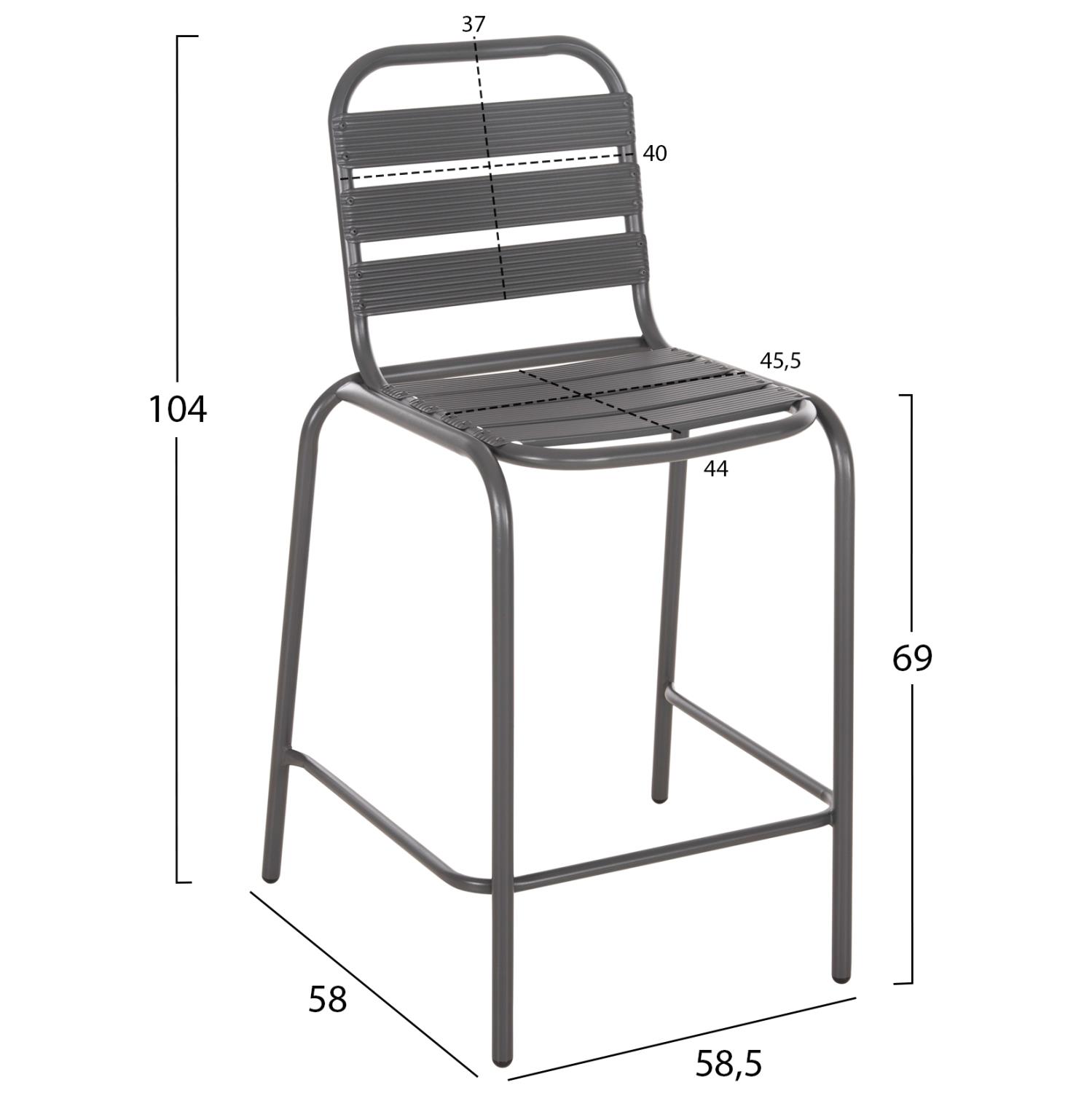 Το LAURA είναι η καινούργια προσθήκη στην γκάμα μας. Ένα σκαμπό μπαρ εξωτερικού χώρου, με μεταλλικό σκελετό σε ΓΚΡΙ χρώμα. Η πλάτη και το μεσαίου ύψους κάθισμα αποτελούνται από «φέτες» αλουμινίου, επίσης, σε ΓΚΡΙ χρώμα. Το σκαμπό είναι ελαφρύ και ανθεκτικό στην χρήση του, και μπορεί να συνδυαστεί με πληθώρα τραπεζιών stand, χάρη στο λιτό κι απέριττο design του.