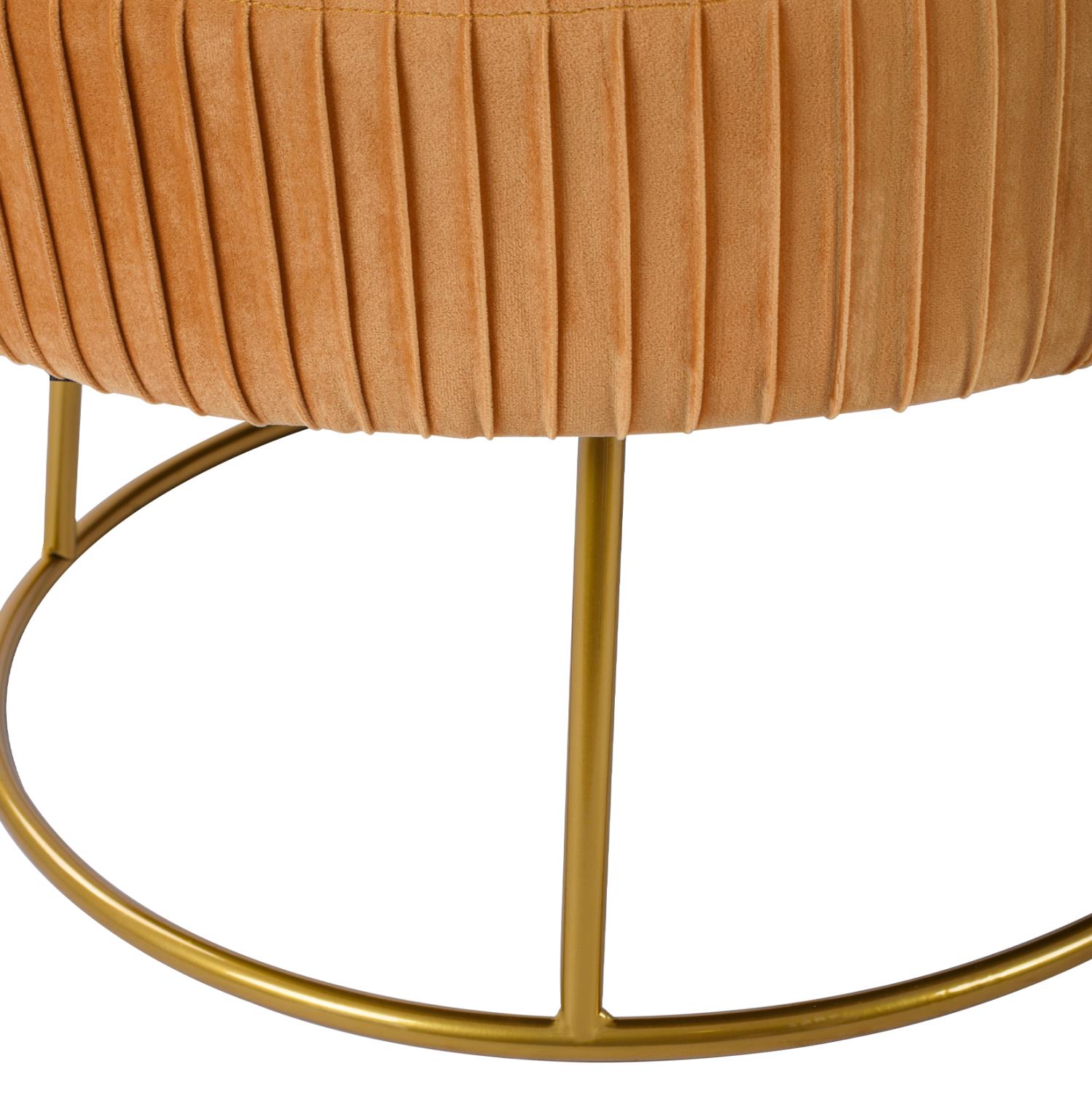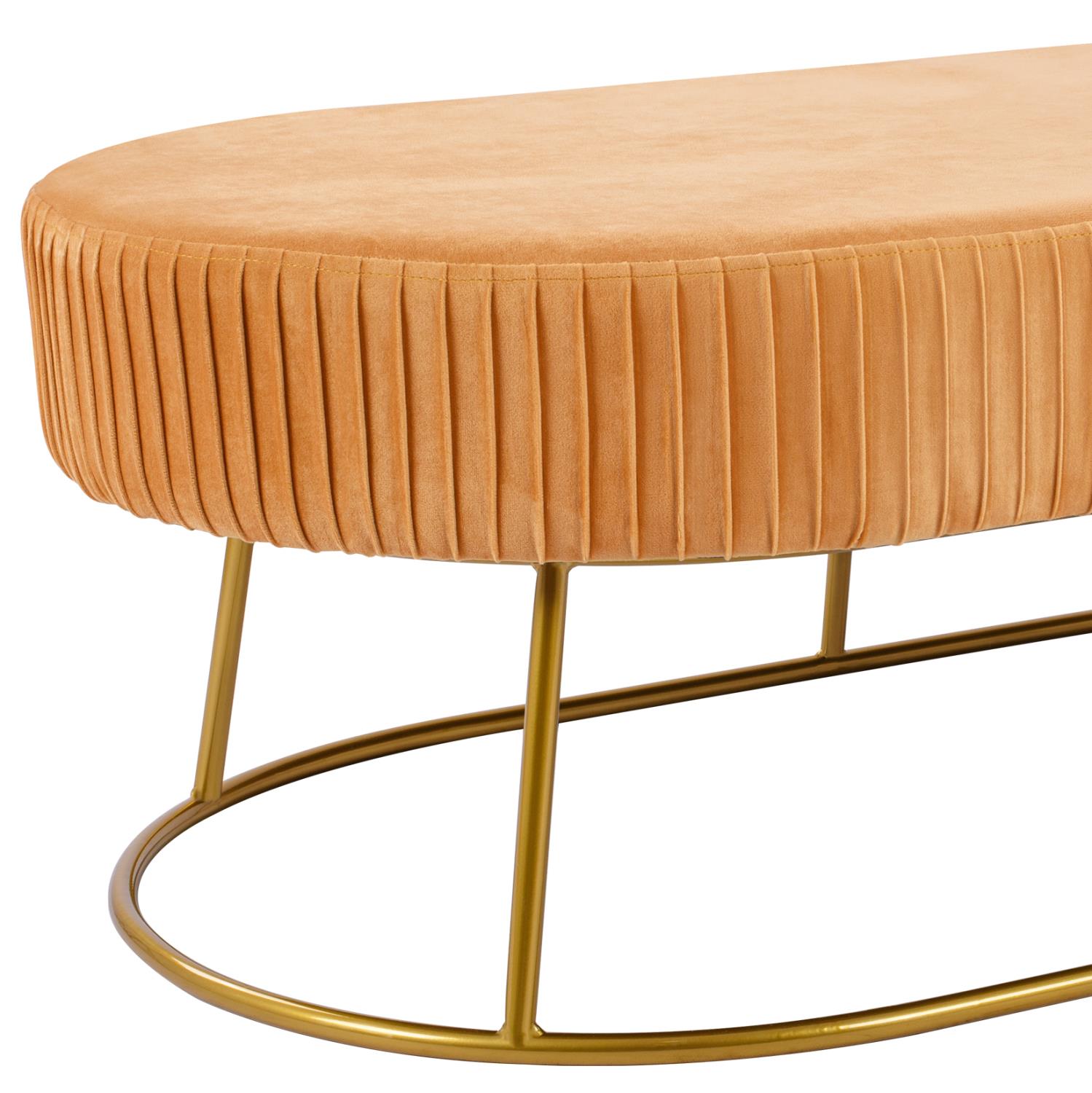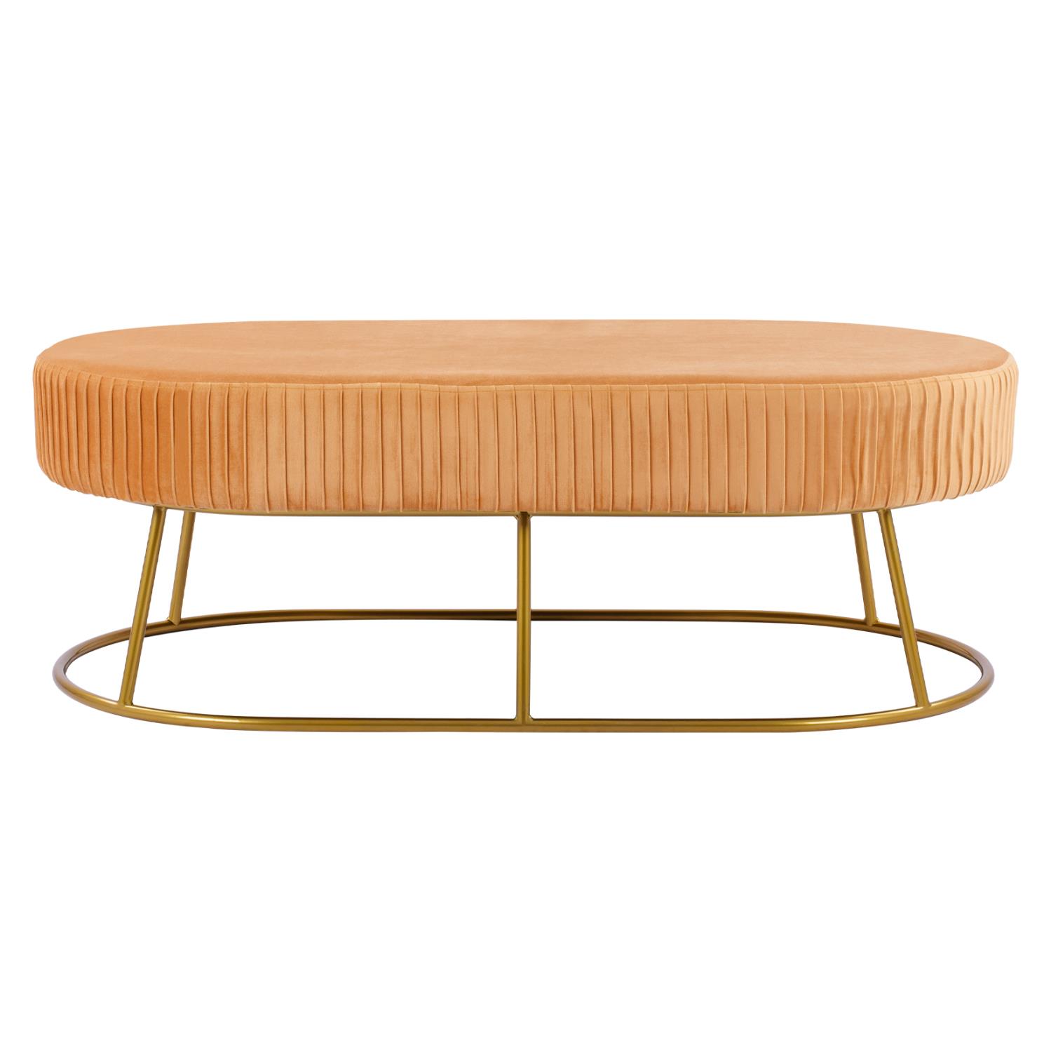 Σκαμπό παγκάκι ALINAFE από βελούδο σε χρυσή απόχρωση με μεταλλική βάση.