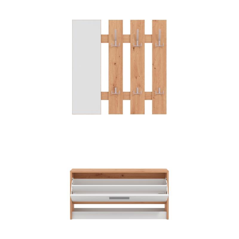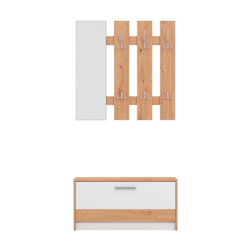 Το σταντ εισόδου Rimini είναι η απόλυτη επιλογή για να δημιουργήσετε έναν οργανωμένο, λειτουργικό και αισθητικά ευχάριστο χώρο στην είσοδο του σπιτιού σας. Η πρακτικότητα και ο κομψός σχεδιασμός του το καθιστούν την τέλεια λύση για κάθε σπίτι. Το έπιπλο προσφέρει μια ευρύχωρη παπουτσοθήκη, μια λειτουργική κρεμάστρα για το πανωφόρι σας και έναν ενσωματωμένο καθρέφτη, ώστε να μπορείτε να έχετε μια τελευταία ματιά πριν φύγετε από το σπίτι. Επιπλέον, το σταντ διαθέτει αποθηκευτικούς χώρους για τα προσωπικά σας αντικείμενα, όπως τα κλειδιά και τις τσάντες, δίνοντάς σας την άνεση να τα βρίσκετε πάντα εύκολα και οργανωμένα.