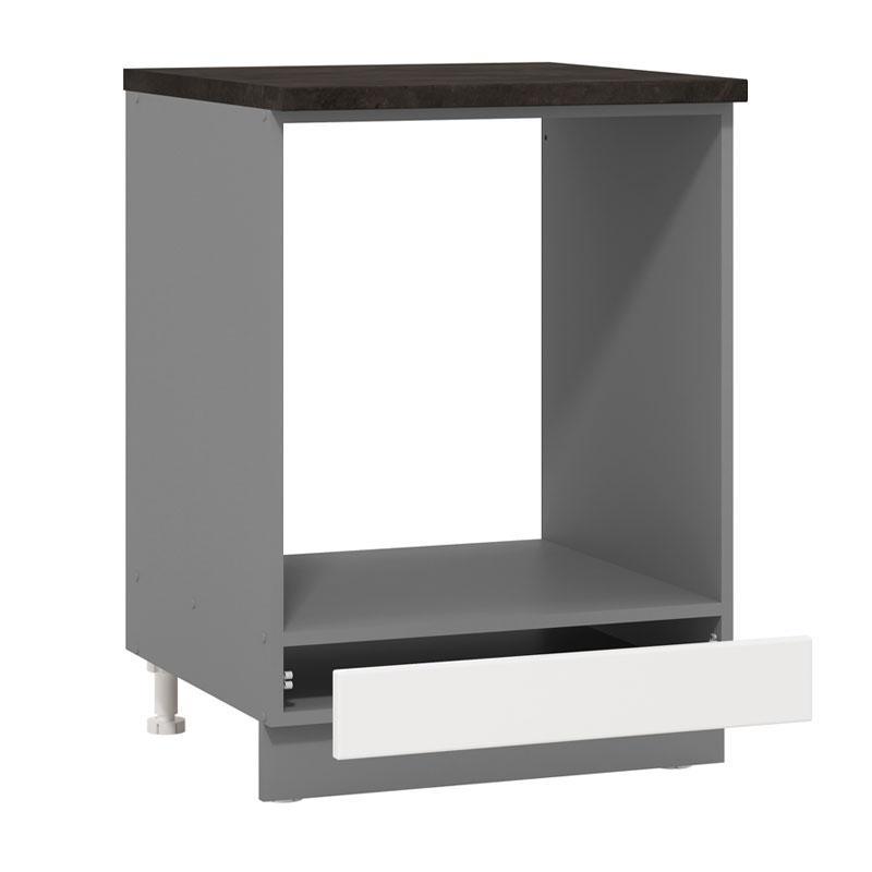 Το επιδαπέδιο ντουλάπι κουζίνας Petra DU60 R, σε συνδυασμό αποχρώσεων Γκρί Γραφίτη, Λευκό Γυαλιστερό και Γκρί Mατ, προορίζεται και για εγκατάσταση εντοιχιζόμενου φούρνου και αποτελεί συμπληρωματικό τμήμα της σύνθεσης κουζίνας Petra 200.