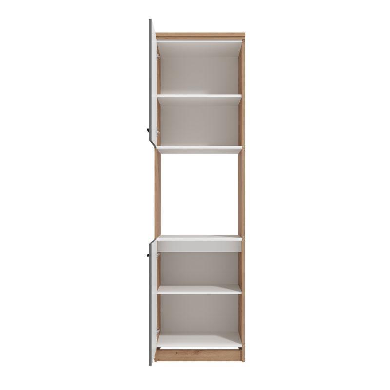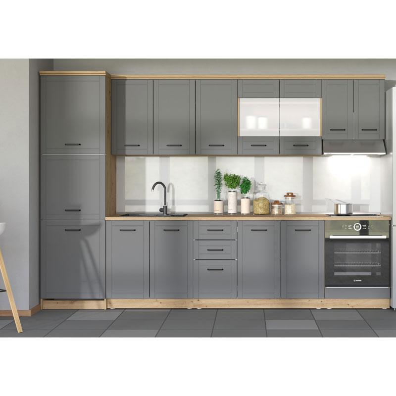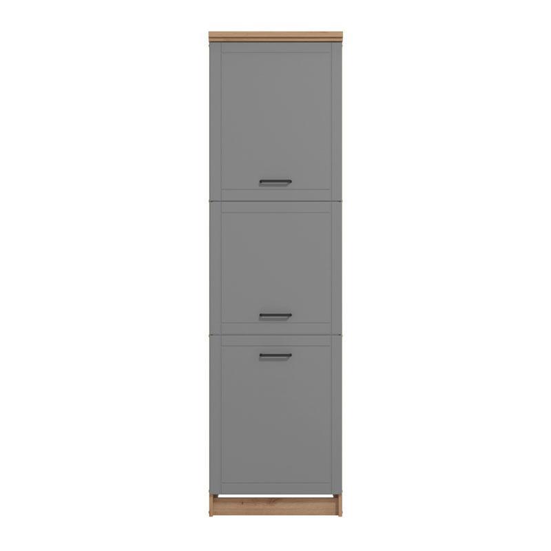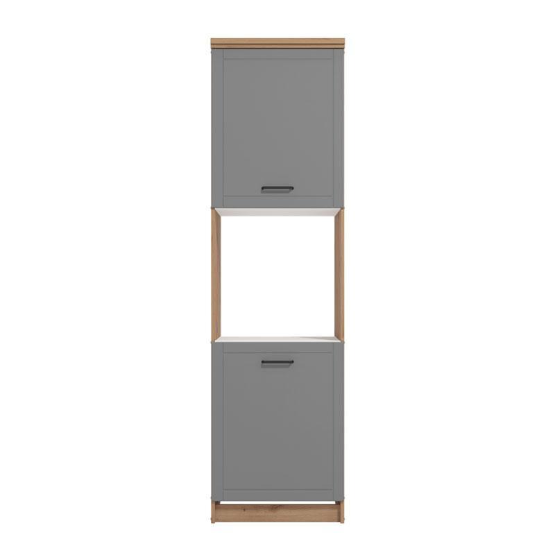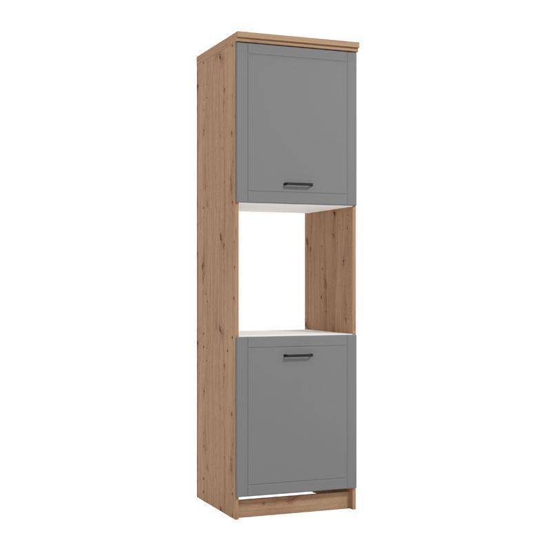 Η στήλη κουζίνας Valencia BD60, σε συνδυασμό αποχρώσεων artisan oak και Γκρί Mατ, προορίζεται και για εγκατάσταση εντοιχιζόμενων συσκευών και αποτελεί συμπληρωματικό τμήμα της σύνθεσης κουζίνας Valencia 200.