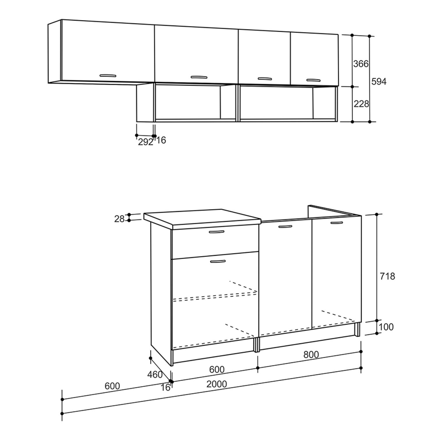 Έτοιμη Σύνθεση κουζίνας RODNEY C2442.10 Μελαμίνη Γκρί με Πάγκο Λευκό 200×46-29,2εκ.
