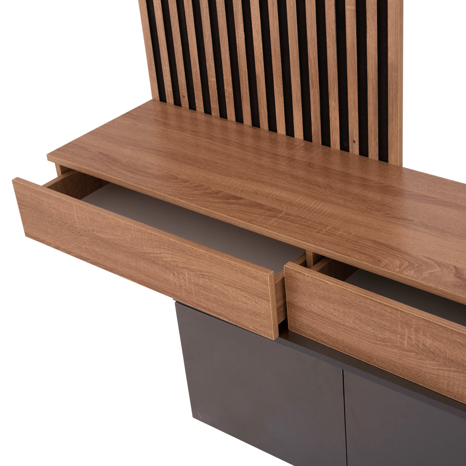 Ολόκληρο το έπιπλο είναι κατασκευασμένο από μελαμίνη εξαιρετικής ποιότητας 15mm. Η μελαμίνη είναι είδος ξύλου σε μορφή μοριοσανίδας. Οι μοριοσανίδες είναι προϊόντα που έχουν τη μορφή πλάκας (panel). Πρόκειται για ένα συνθετικό υλικό με πολύ σκληρή επιφάνεια, με αποτέλεσμα να είναι πολύ ανθεκτική στις γρατζουνιές, στην τριβή και τους λεκέδες.