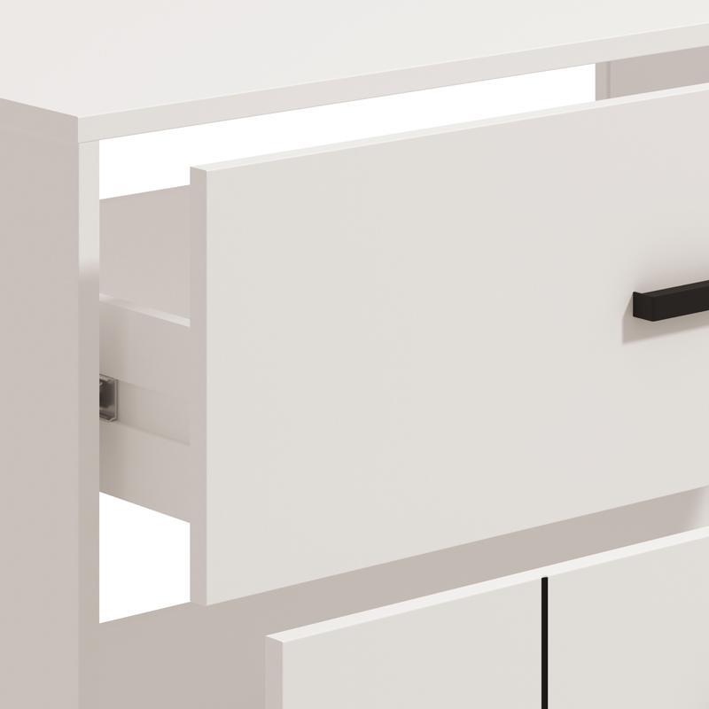 Η λευκή απόχρωση σε συνδυασμό με τα μαύρα χερούλια προσδίδει μία διακριτική φινέτσα και φωτεινότητα στο χώρο, καθιστώντας τη συρταριέρα μια διαχρονική προσθήκη που ταιριάζει εύκολα σε διάφορα στυλ διακόσμησης. Ο λιτός σχεδιασμός της ALERIA αναδεικνύει τη λειτουργικότητά της, χωρίς να στερείται αισθητικής.
