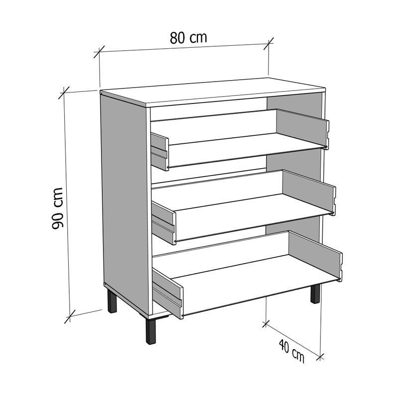 Η συρταριέρα ALERIA 80 3F προσφέρει ιδανική ισορροπία μεταξύ λειτουργικότητας και κομψού σχεδιασμού. Με τρία ευρύχωρα συρτάρια, είναι κατάλληλη για την τακτοποίηση ρούχων, αξεσουάρ ή μικροαντικειμένων, συμβάλλοντας στη διατήρηση ενός οργανωμένου και περιποιημένου χώρου.